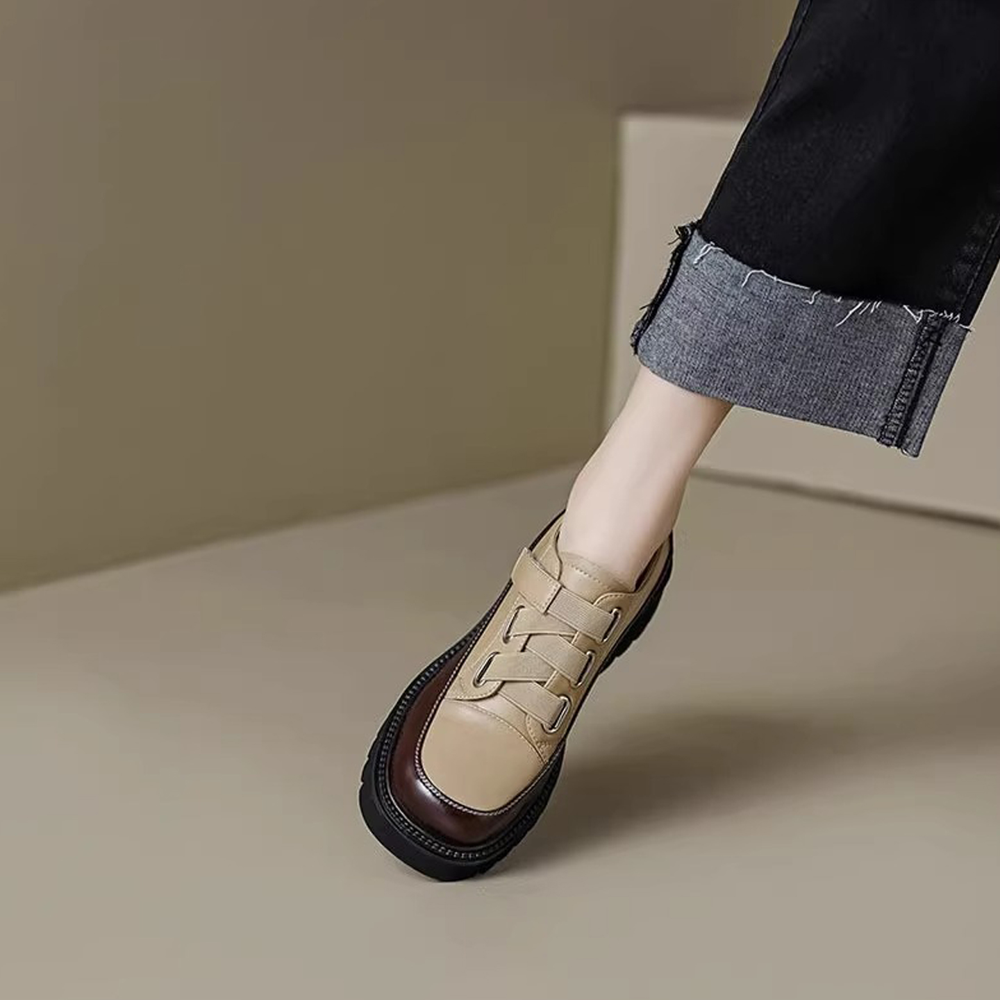 欧洲站2025新款真皮英伦复古乐福鞋女厚底增高小皮鞋百搭通勤单鞋