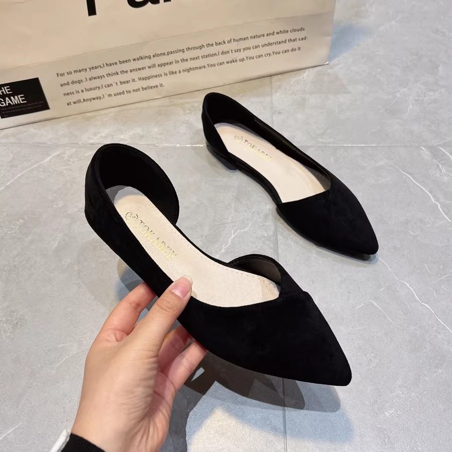 2025春季季舒适软底职业黑色平底鞋女尖头大码浅口工作瓢鞋女单鞋