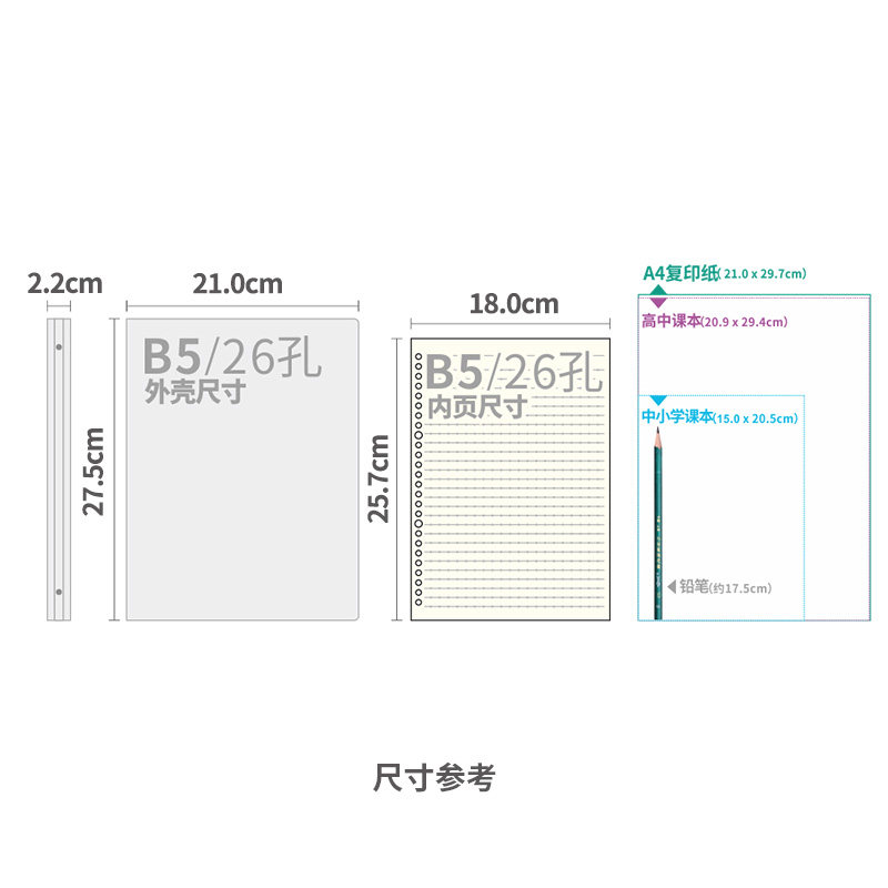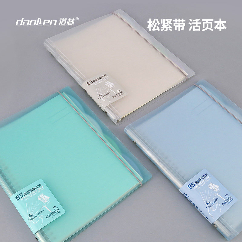道林PP活页本26孔固力夹B5松紧带简约塑料外壳绑带圆弧书脊可拆卸替芯护眼米黄纸学生笔记本考研练习抄写记事