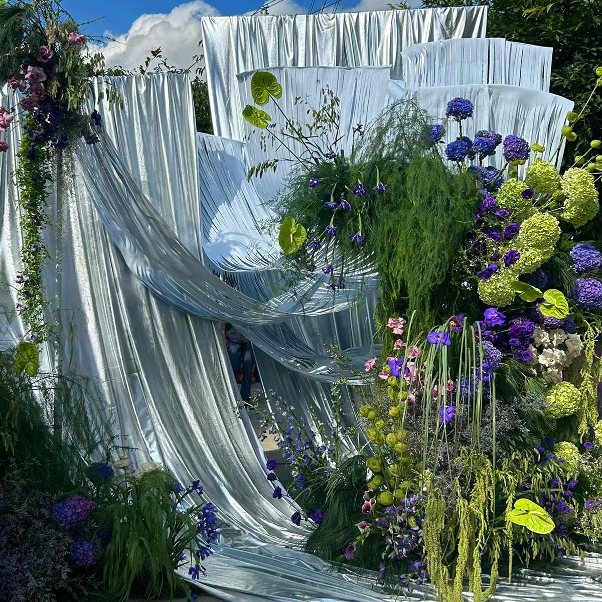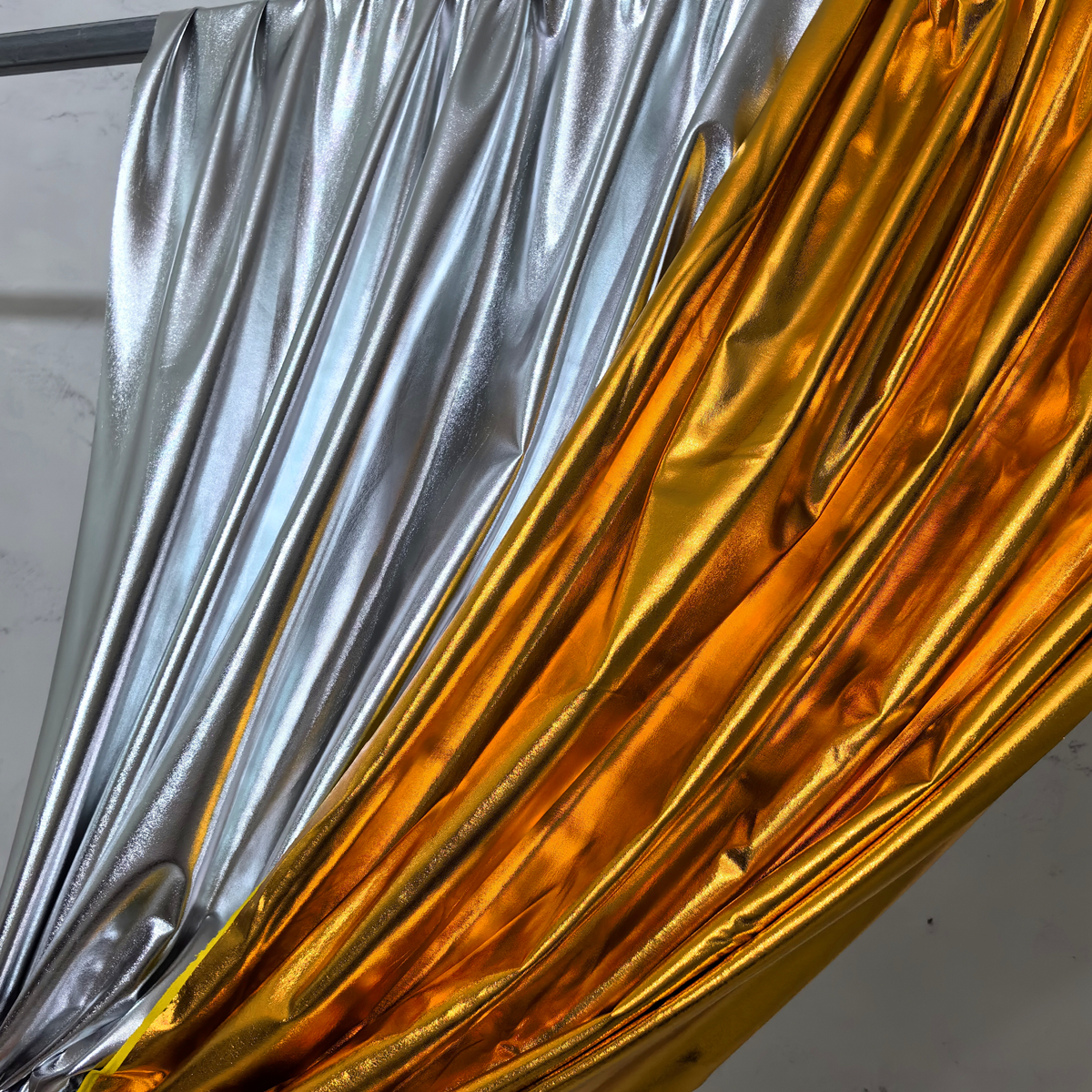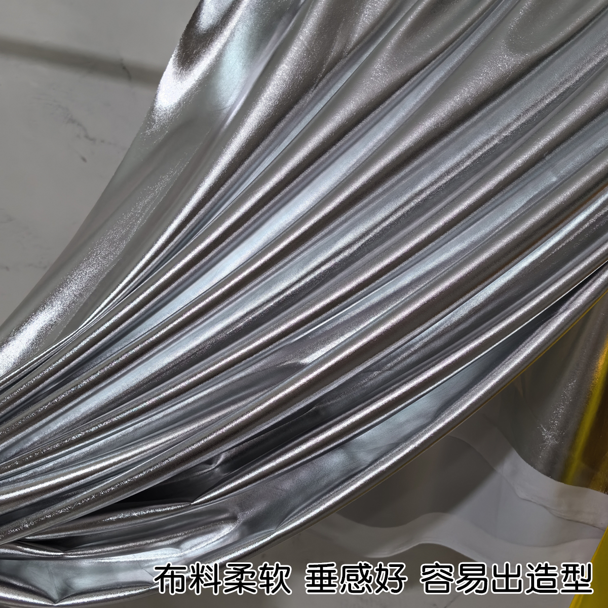 烫金布料烫银造型布婚庆背景装饰纱幔软包柱子舞台表演服装漆皮面