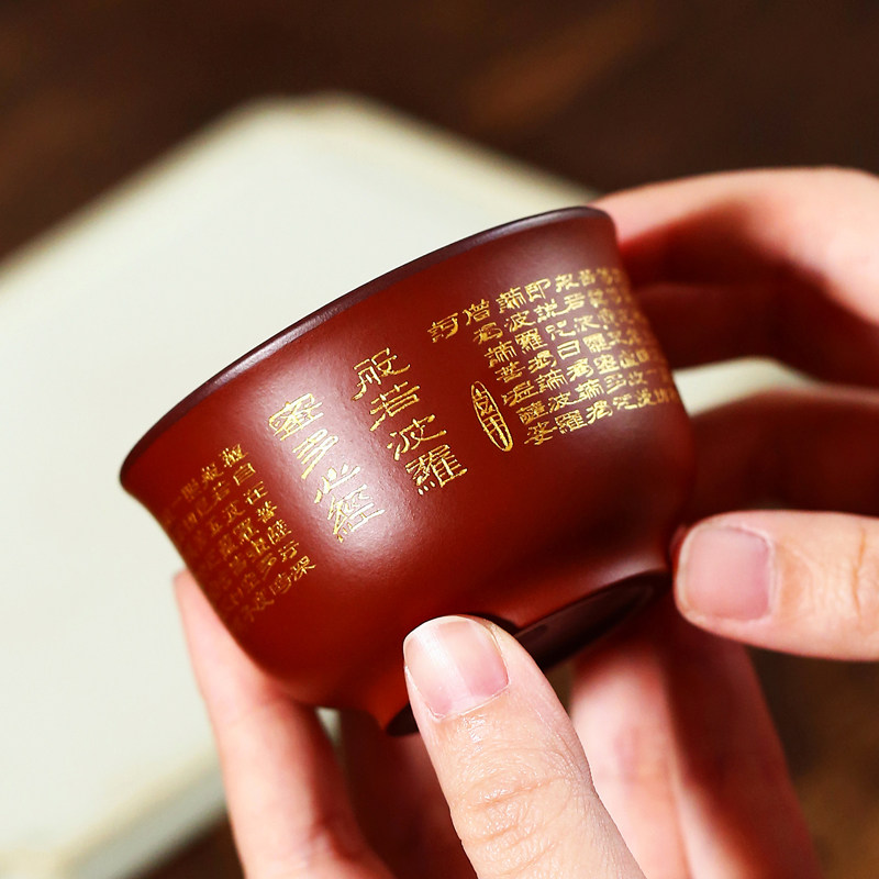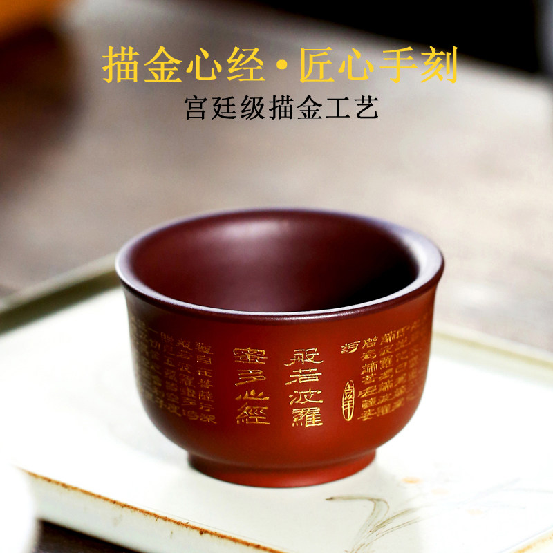 高档 宜兴紫砂品茗主人杯名家吴建立刻绘泡功夫茶杯小单杯 心经杯