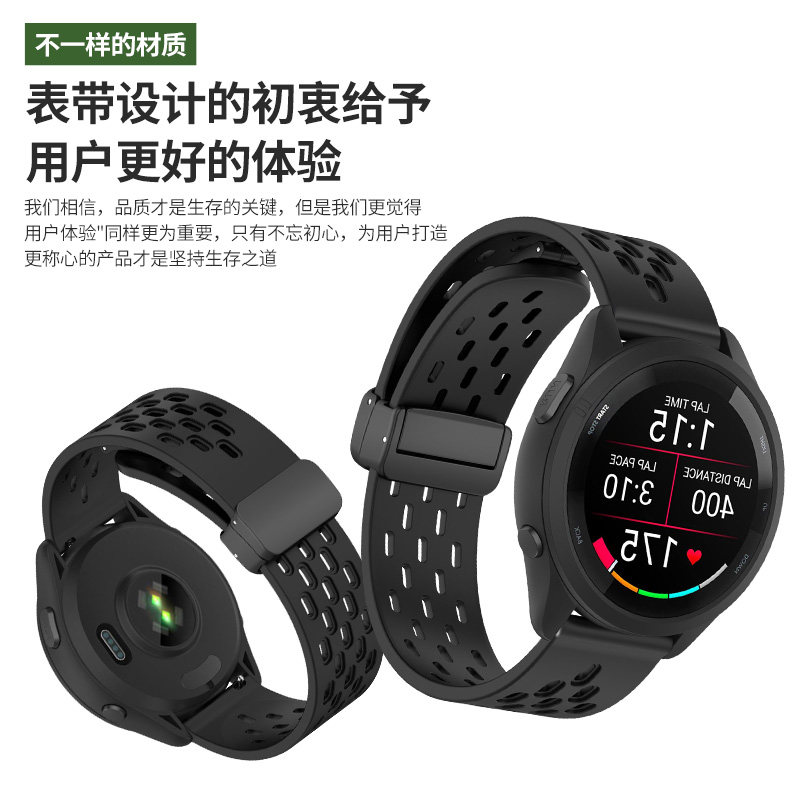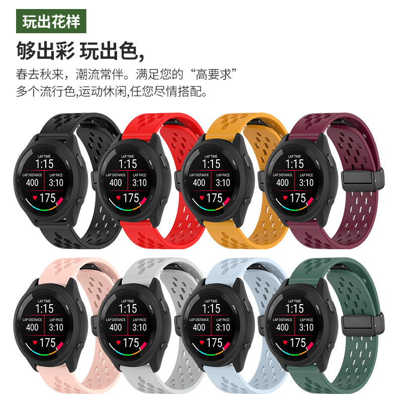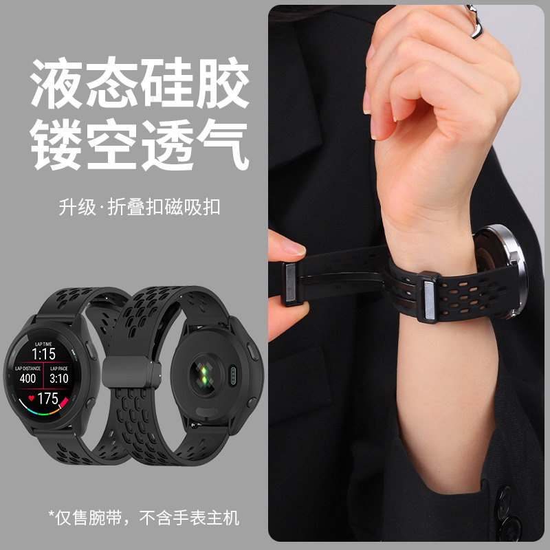 适用佳明手表表带Forerunner245/255S/265music磁吸硅胶腕带Garmin运动645透气168表链venu2s配件active5男女