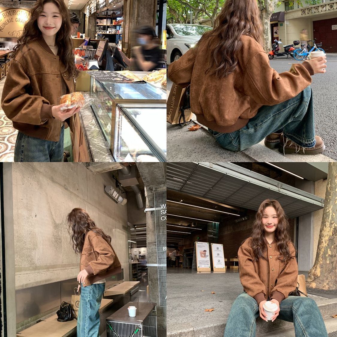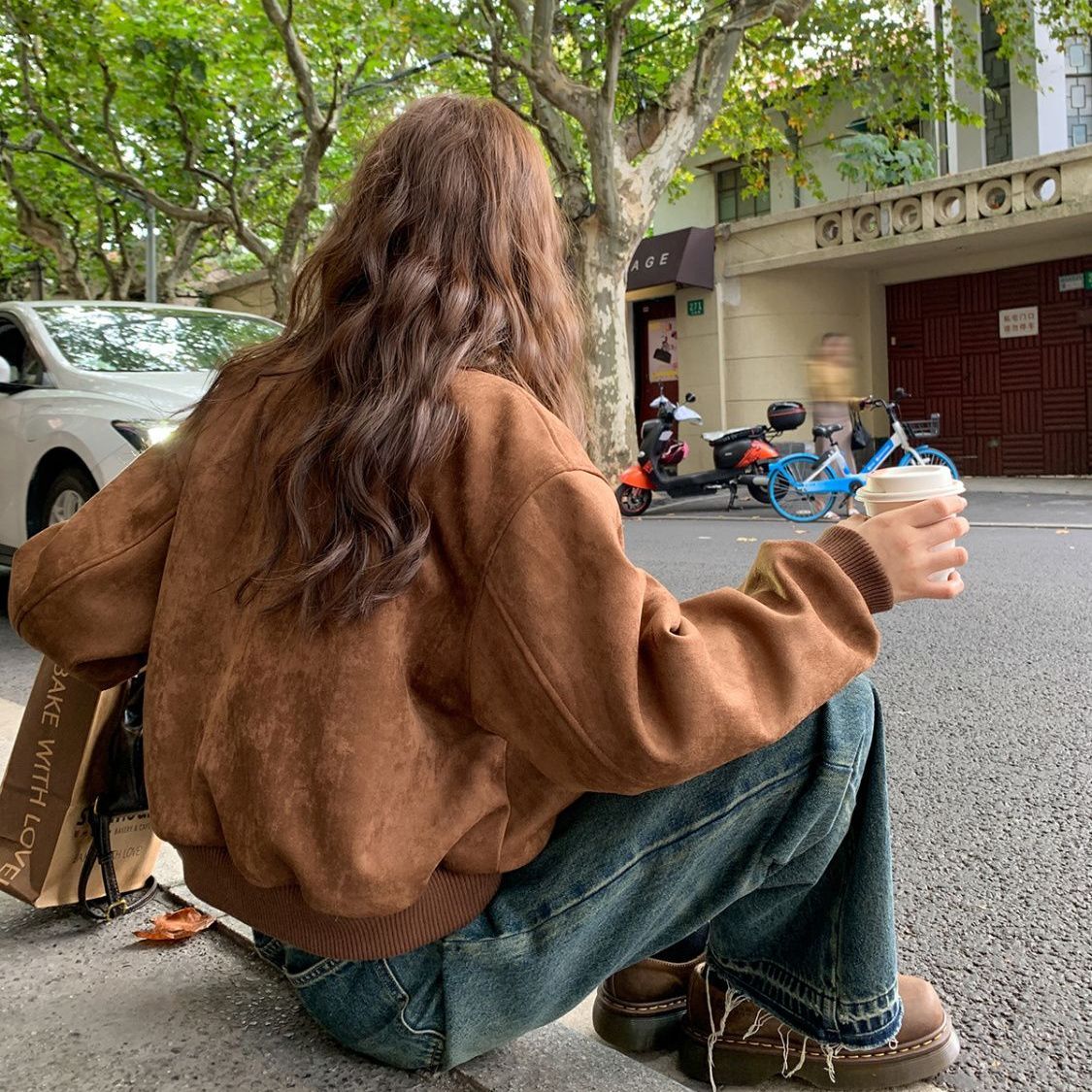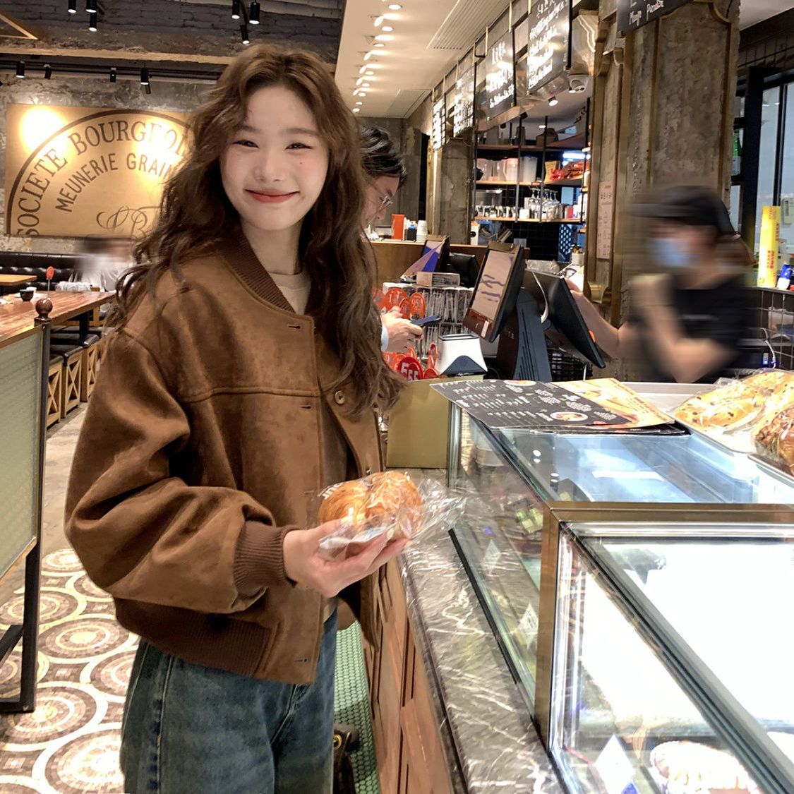 美拉德咖色短外套秋冬套装女2025时尚麂皮绒炸街风两件套气质穿搭