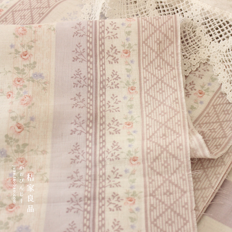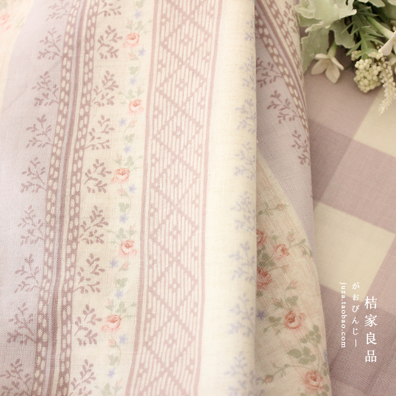 法式花朵长绒棉双层纱布料纯棉睡衣床品被套床单手工发圈全棉面料
