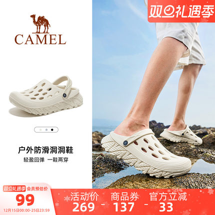 骆驼男鞋洞洞鞋2025夏季新款厚底防滑女户外凉鞋沙滩鞋涉水拖鞋男