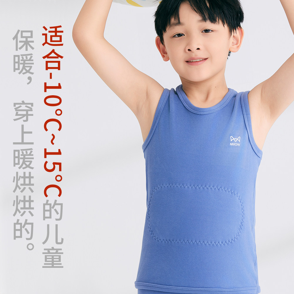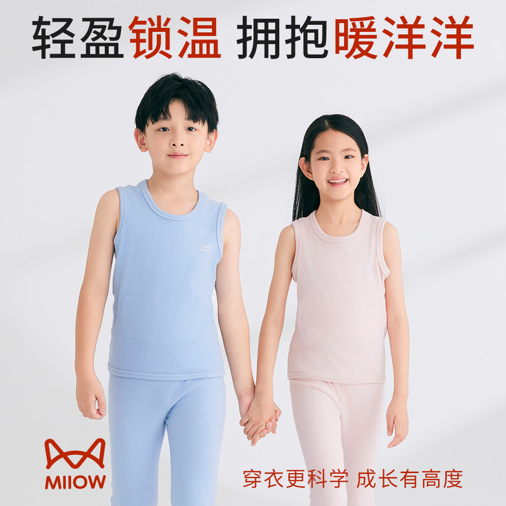 猫人儿童保暖背心男女童秋冬内穿羽绒蚕丝护肚贴片发育期内衣打底
