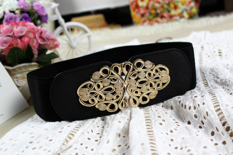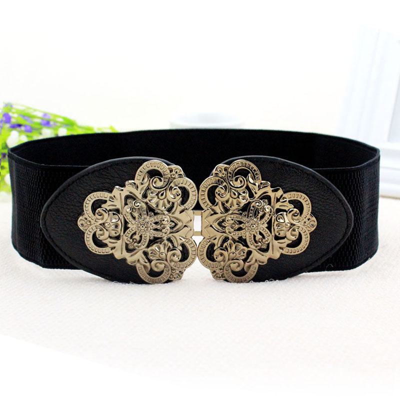 女士百搭风黑色弹力松紧带腰封
