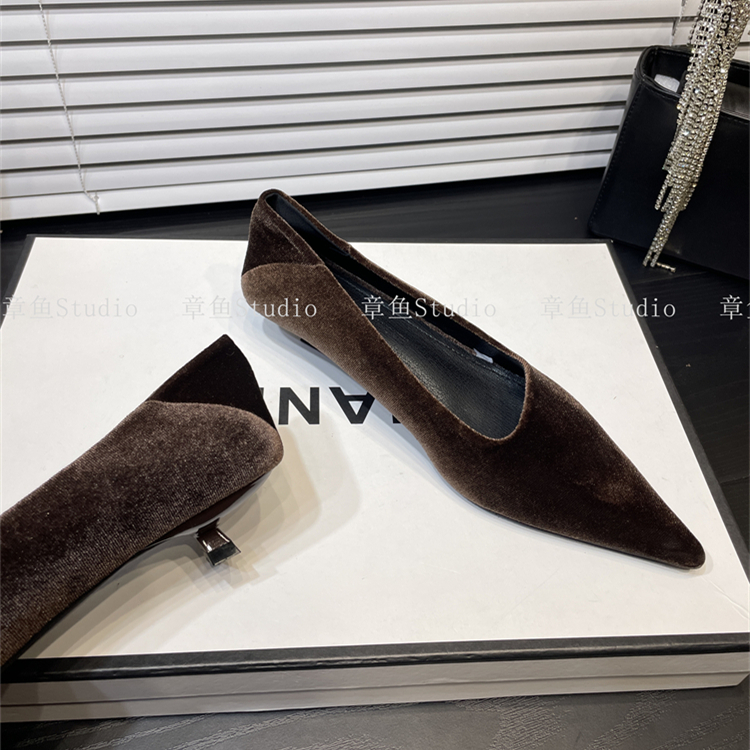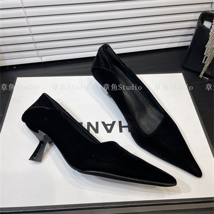 丝绒豹纹猫跟斜口尖头单鞋女2024秋季新款通勤细跟浅口瓢鞋高跟鞋