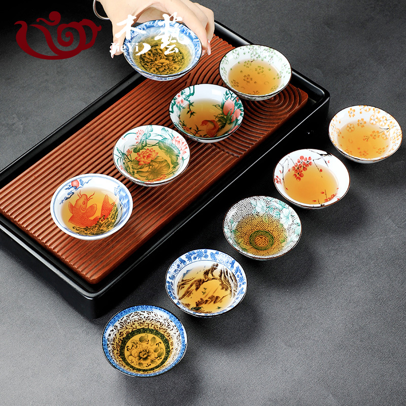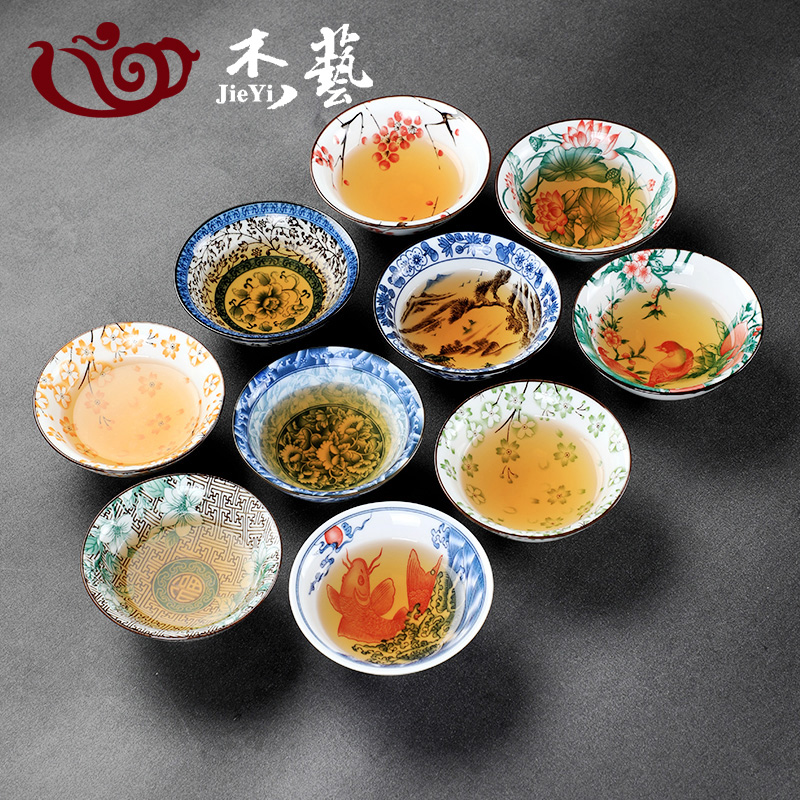 陶瓷茶杯单个主人杯大号斗笠茶盏青花茶碗个人专用品茗杯喝茶杯子