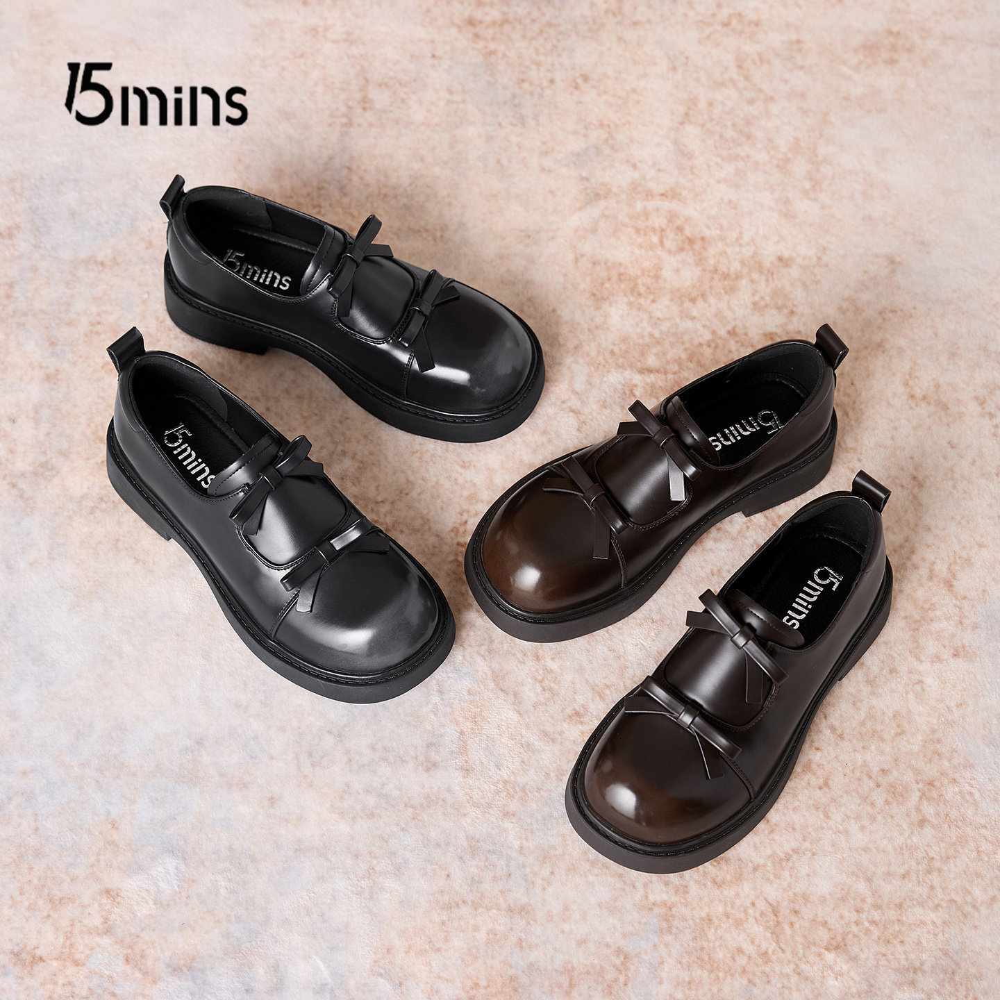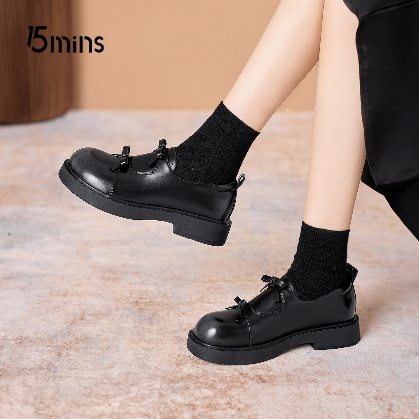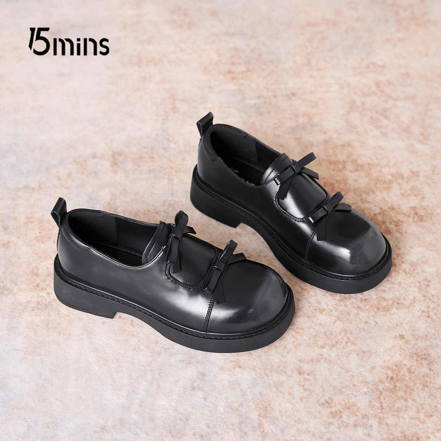 15mins简约黑色乐福鞋女2026新款春季一脚蹬蝴蝶结小皮鞋通勤单鞋