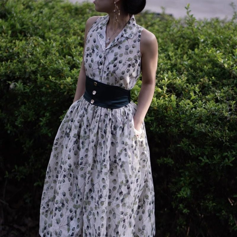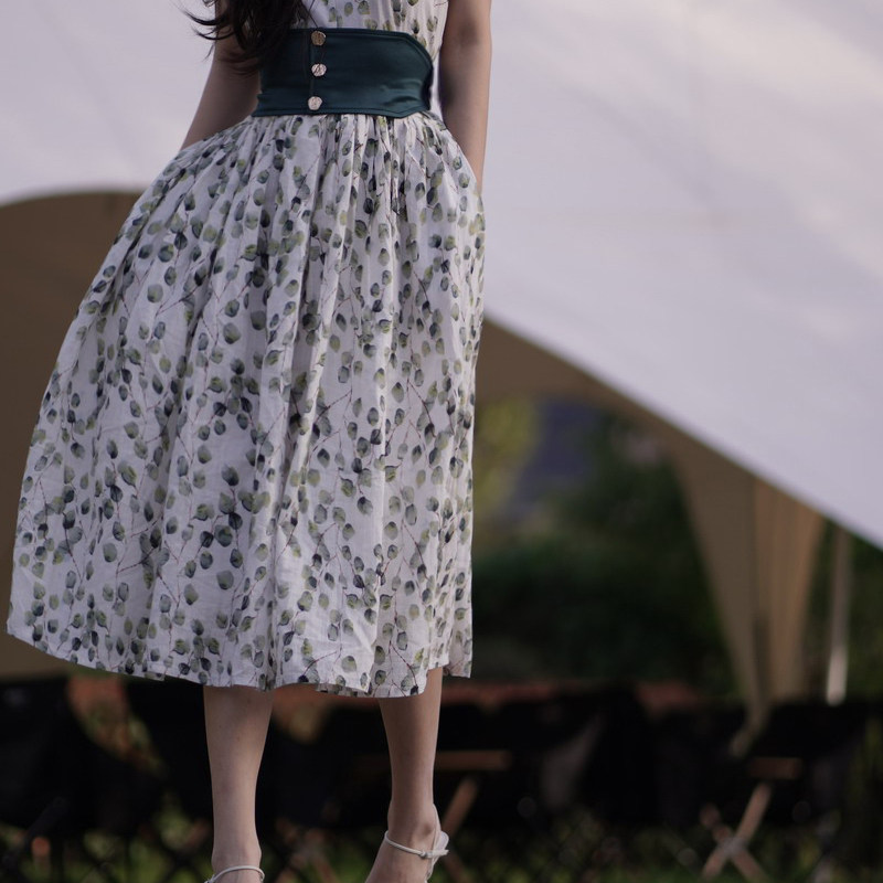 复古大摆全棉碎花腰带