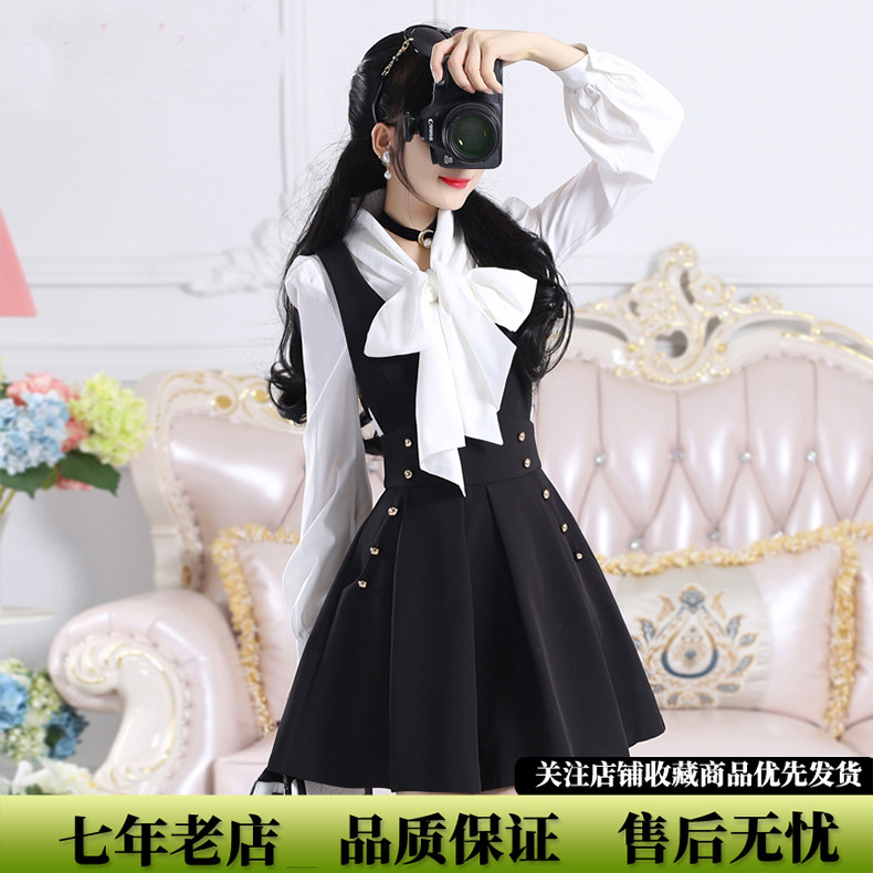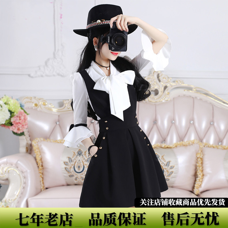 春夏新品套装女装2026韩版黑色背带连衣裙红色蝴蝶结衬衫收腰显瘦