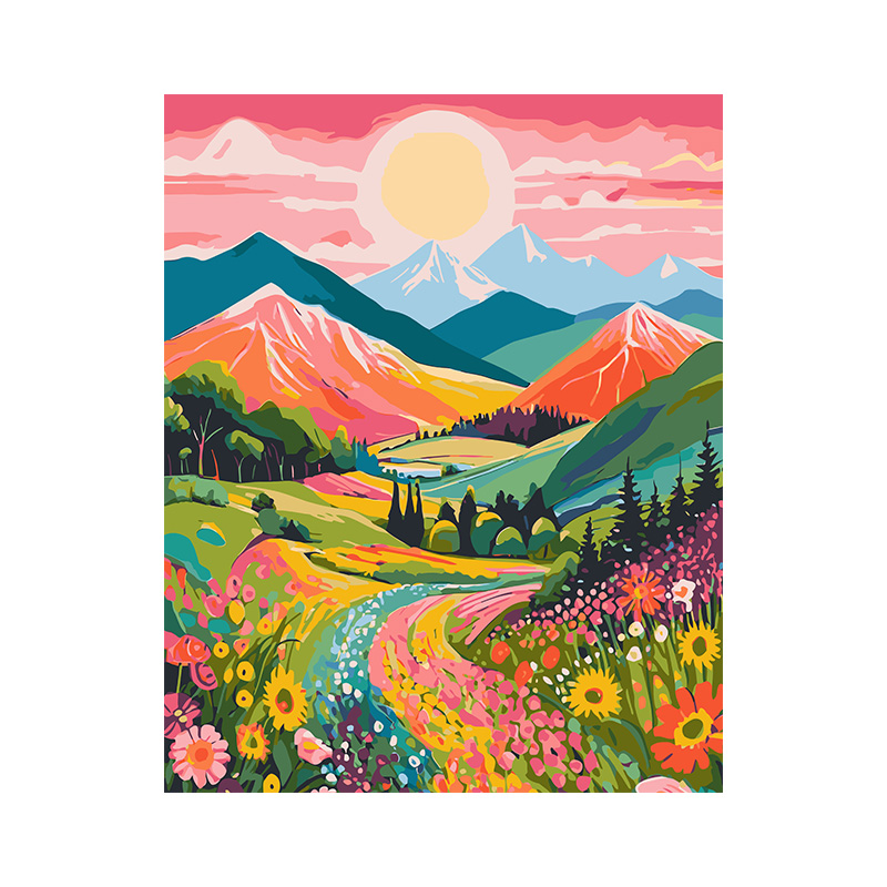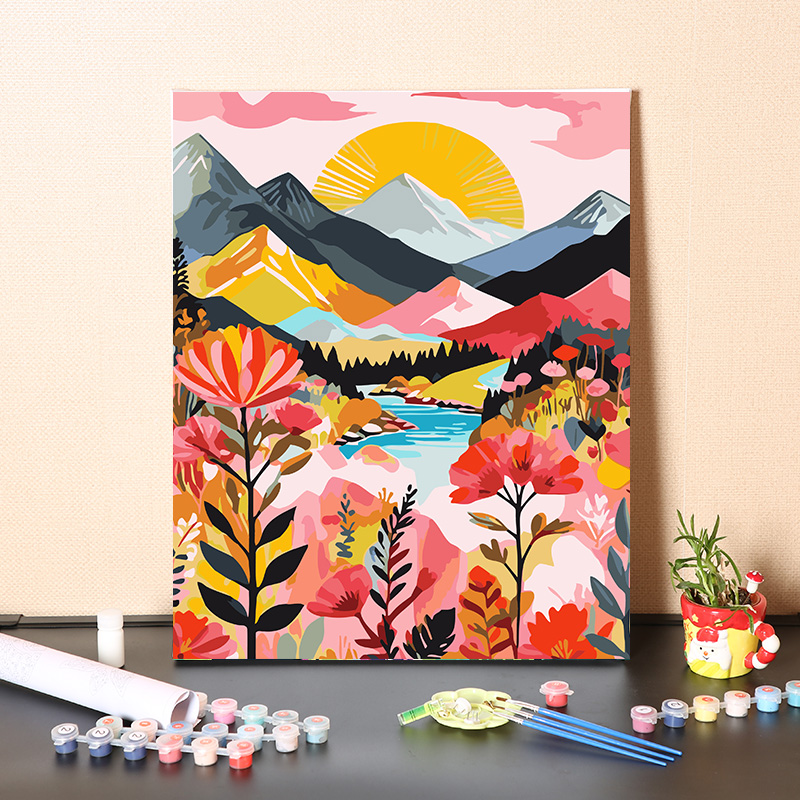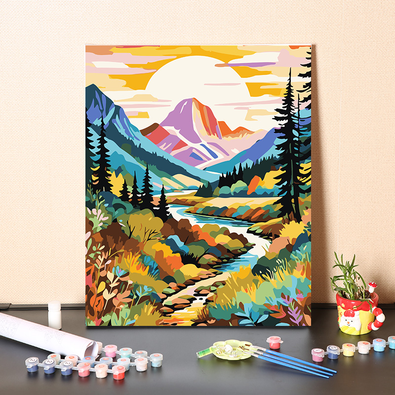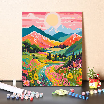 数字油画diy填充治愈系绚丽多彩风景画解闷手工填色油彩丙烯画画