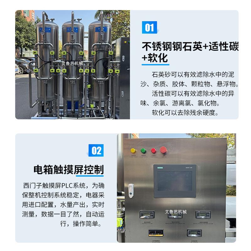 全自动RO不锈钢二级反渗透水机带软化化妆品/制药双级超纯水设备