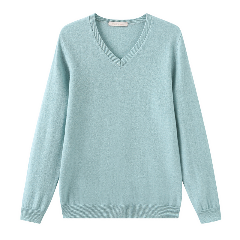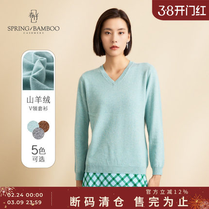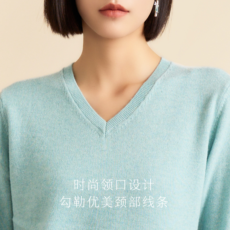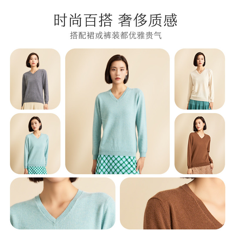春竹100%山羊绒衫女保暖打底衫纯色百搭V领女套衫针织衫女上衣