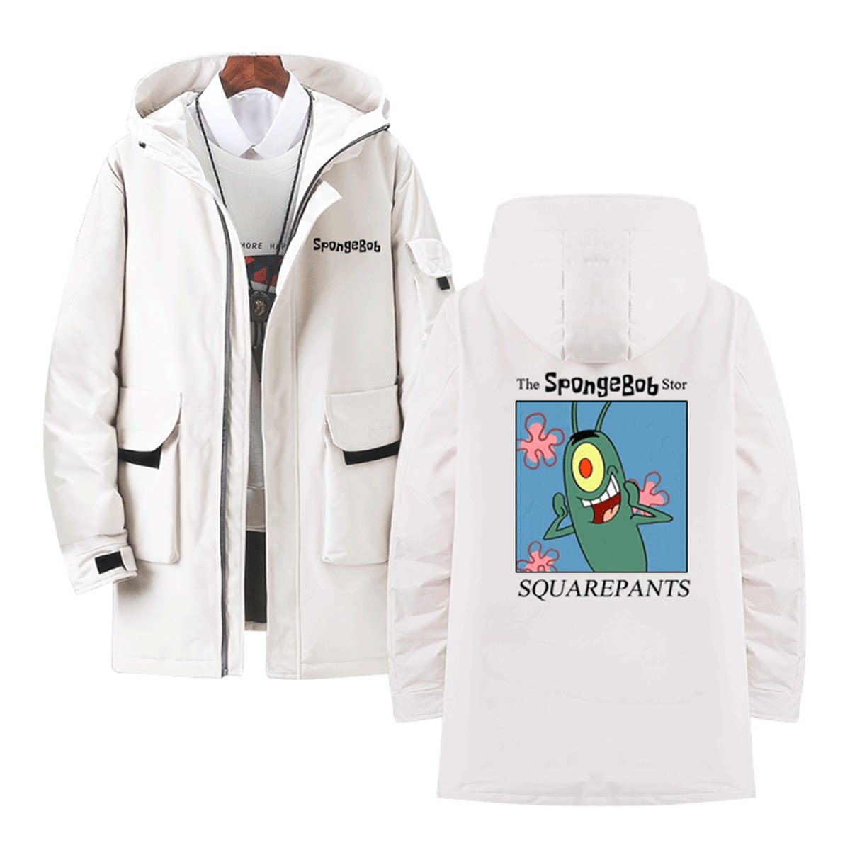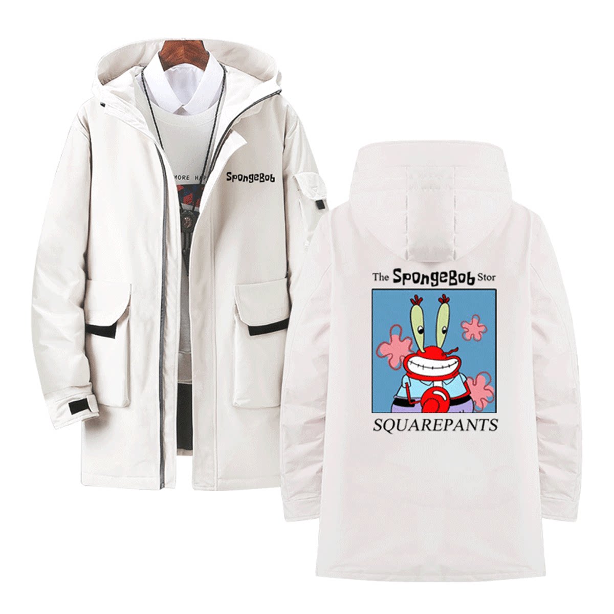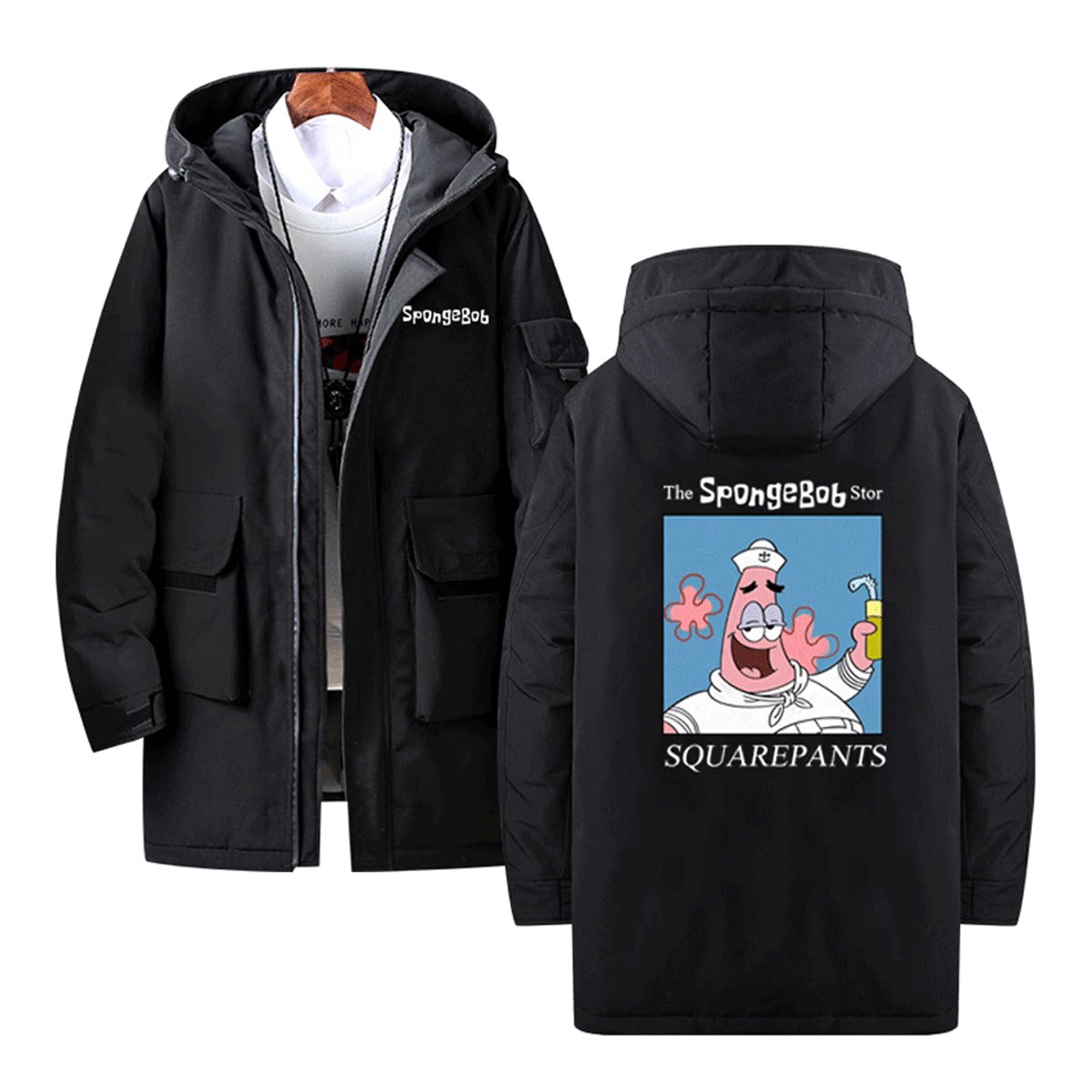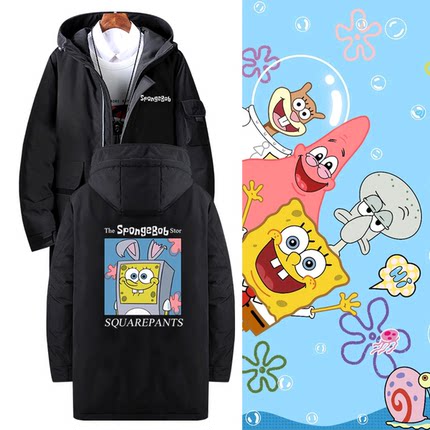 海绵宝宝派大星周边二次元章鱼哥动漫情侣男女可定制中长款羽绒服