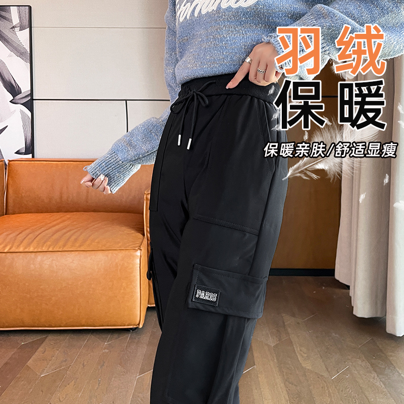 高中生羽绒裤女冬季加绒加厚加长裤子高个子初中生中学生保暖棉裤