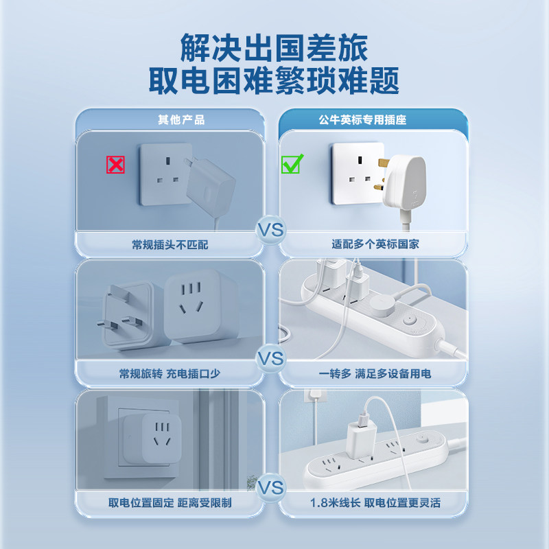 公牛英标插座中国香港澳门新加坡转换插头转换器英规排插英国插排