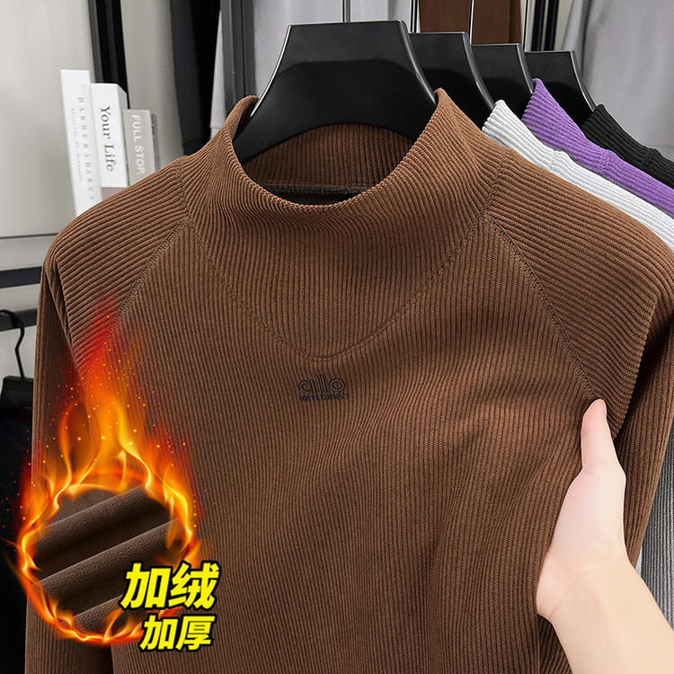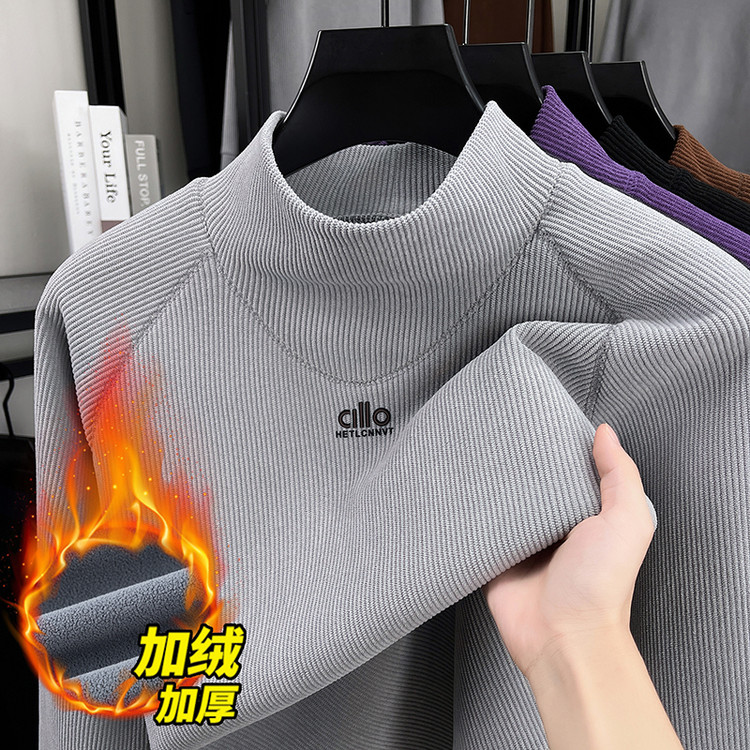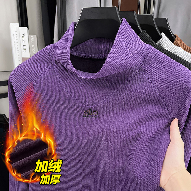 男士高领保暖卫衣秋冬季时尚插肩袖高端加绒保暖打底T恤衫休闲