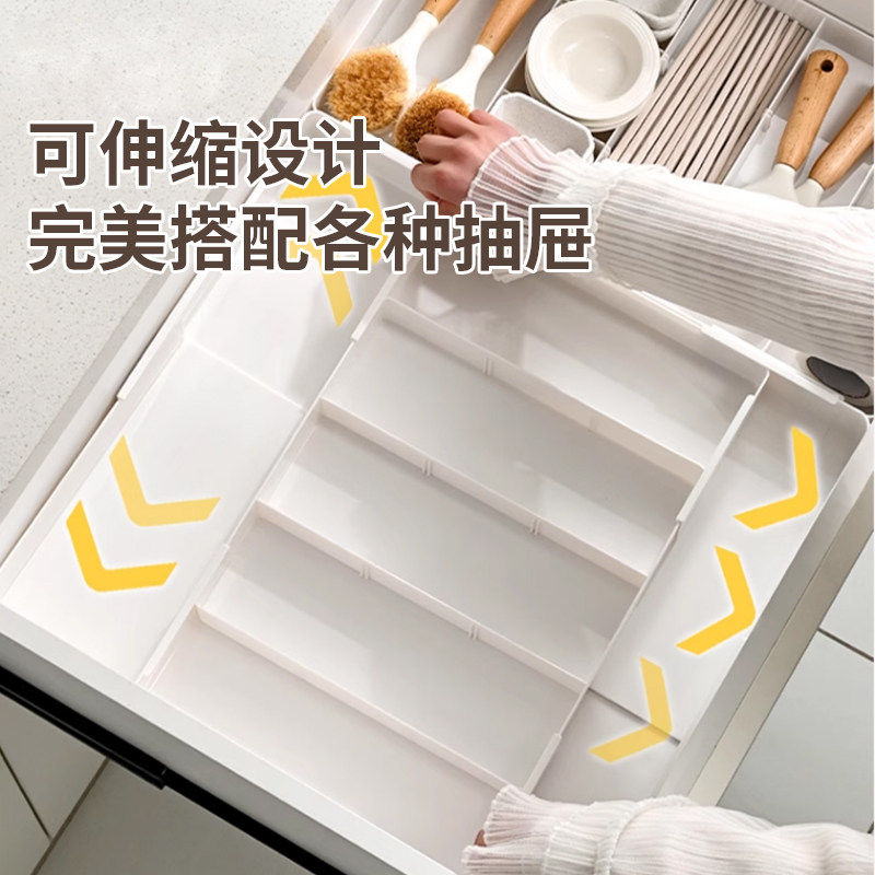 日本抽屉分隔收纳盒可伸缩内置分格板化妆品厨房餐具可调节整理盒
