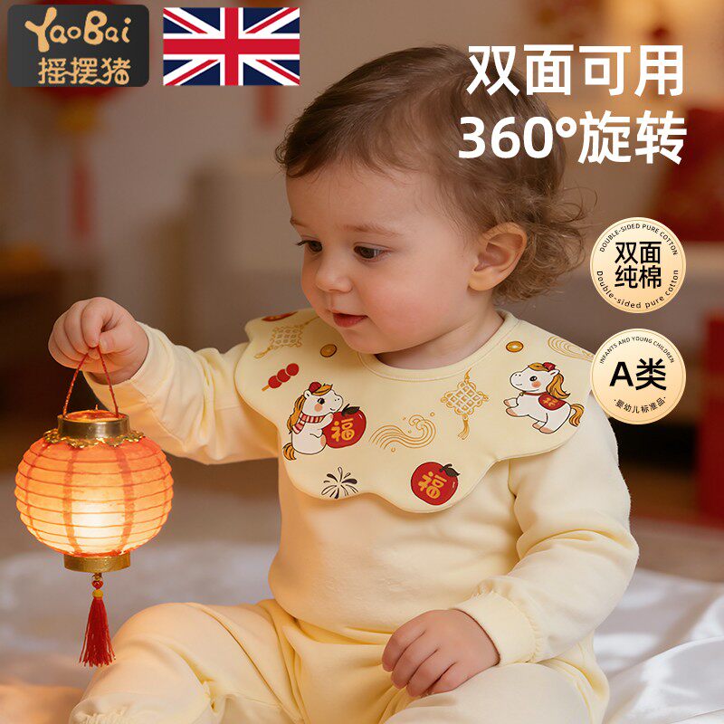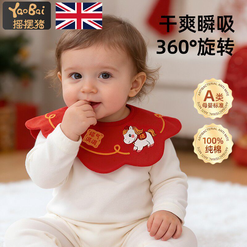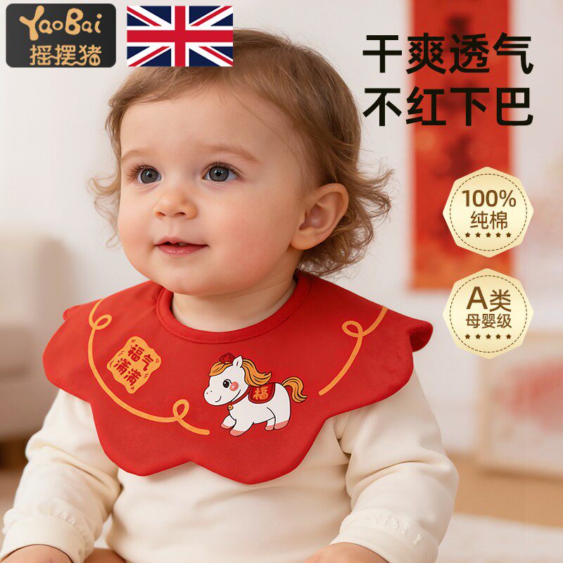 宝宝满月新年口水巾红色围嘴婴幼儿小月龄围兜纯棉a类防吐奶垫巾