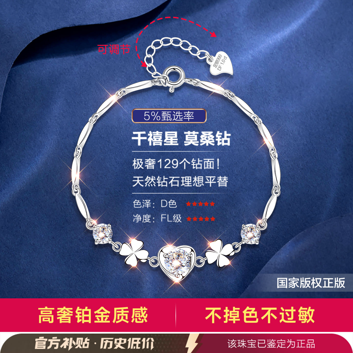 999足银莫桑石钻石莫桑钻银手链女士女999纯银手饰女款女生高级感