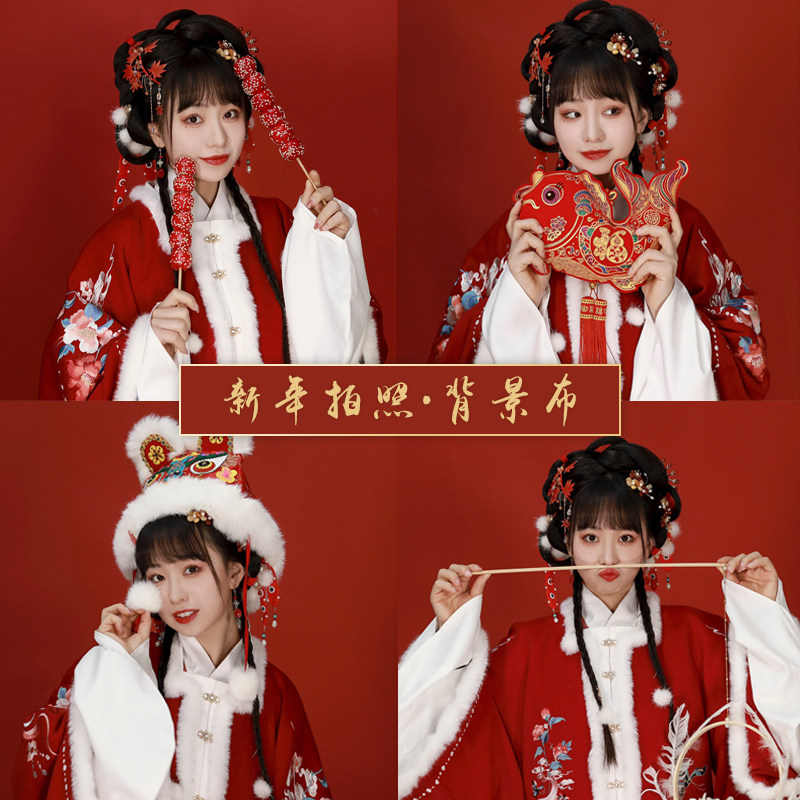 新年红色拍照背景布网红纯色ins风挂布摄影道具主题墨绿绿色复古圣诞节直播间装饰服装写真照相拍摄布景黑布