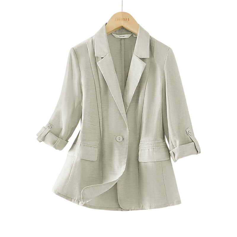 IHIMI海谧设计感天丝小西装女2025秋季新款修身气质时尚短款外套
