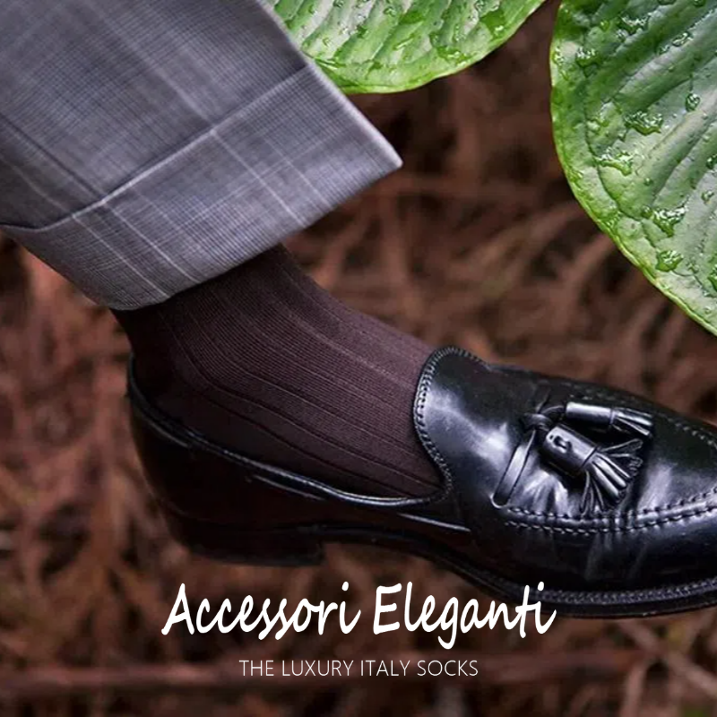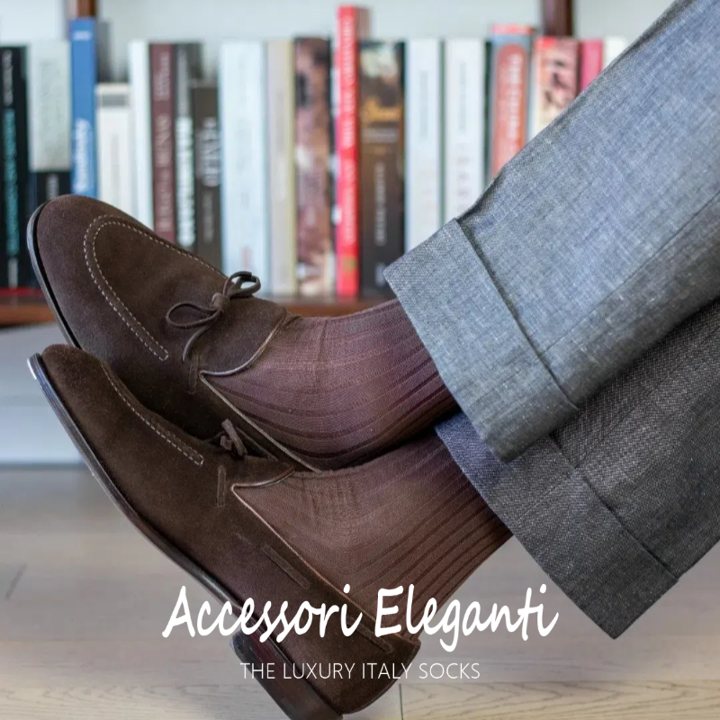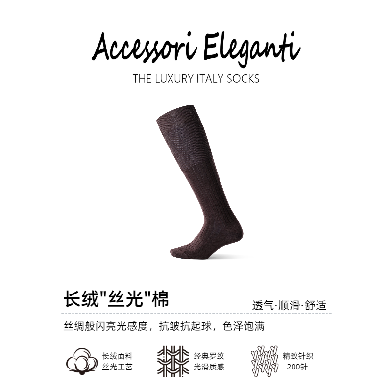 AE绅装袜及膝罗纹系丨棕色款丝光棉袜长筒商务正装西装绅装绅士袜
