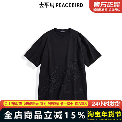 【商场同款】太平鸟男装T恤24新款宽松字母印花短袖潮 B1CNE3207