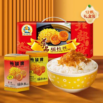 怡诚牌瑶柱丝礼盒干贝酱拌饭即食扇贝海鲜罐头中秋送礼120gx12瓶