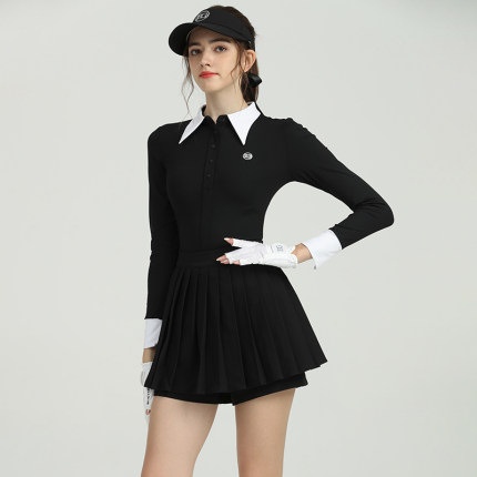 BG新款高尔夫球服装女初秋高端上衣长袖修身保暖衣服黑色短裙套装