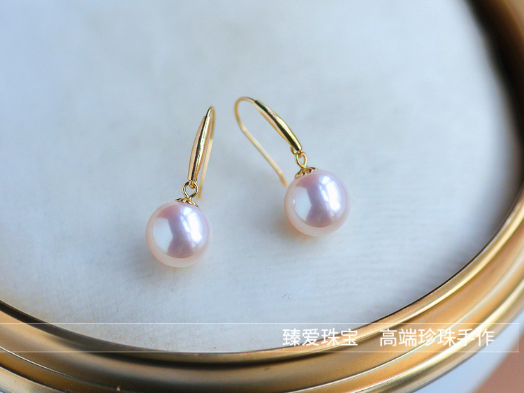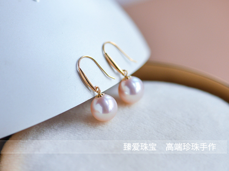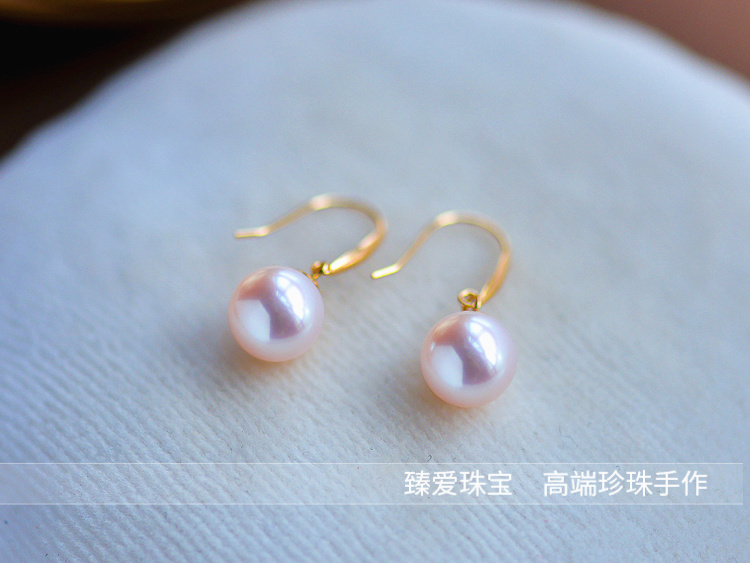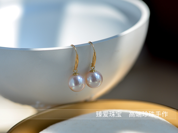 天然淡水珍珠耳钩18k金强光无暇媲美海水akoya耳环耳饰正品包邮