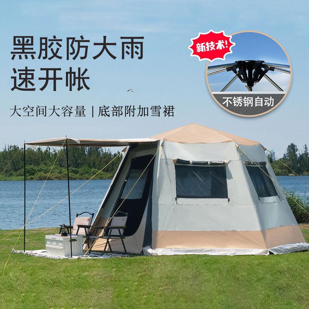 速开六角户外帐篷沙滩露营帐篷防雨野营帐篷黑胶全自动帐篷雪裙