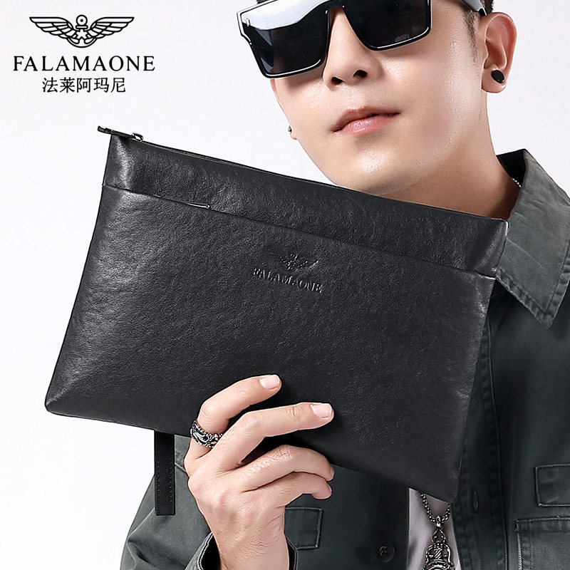 法莱阿玛尼手拿包男士真皮正品高档品牌信封包简约大容量软皮手包