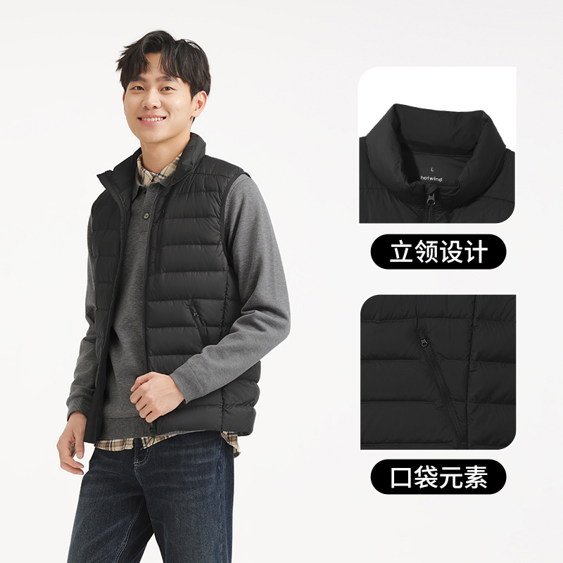 热风2025年冬季新款男士轻薄羽绒保暖马甲可内搭可外穿