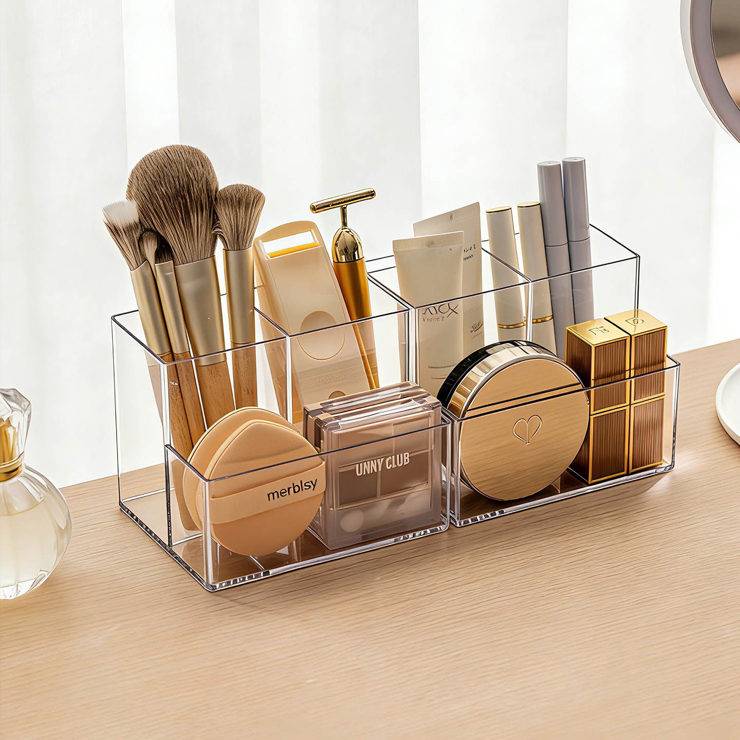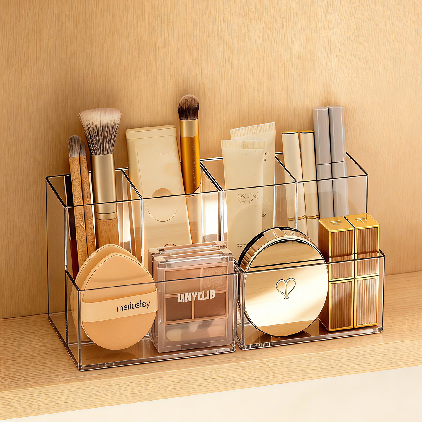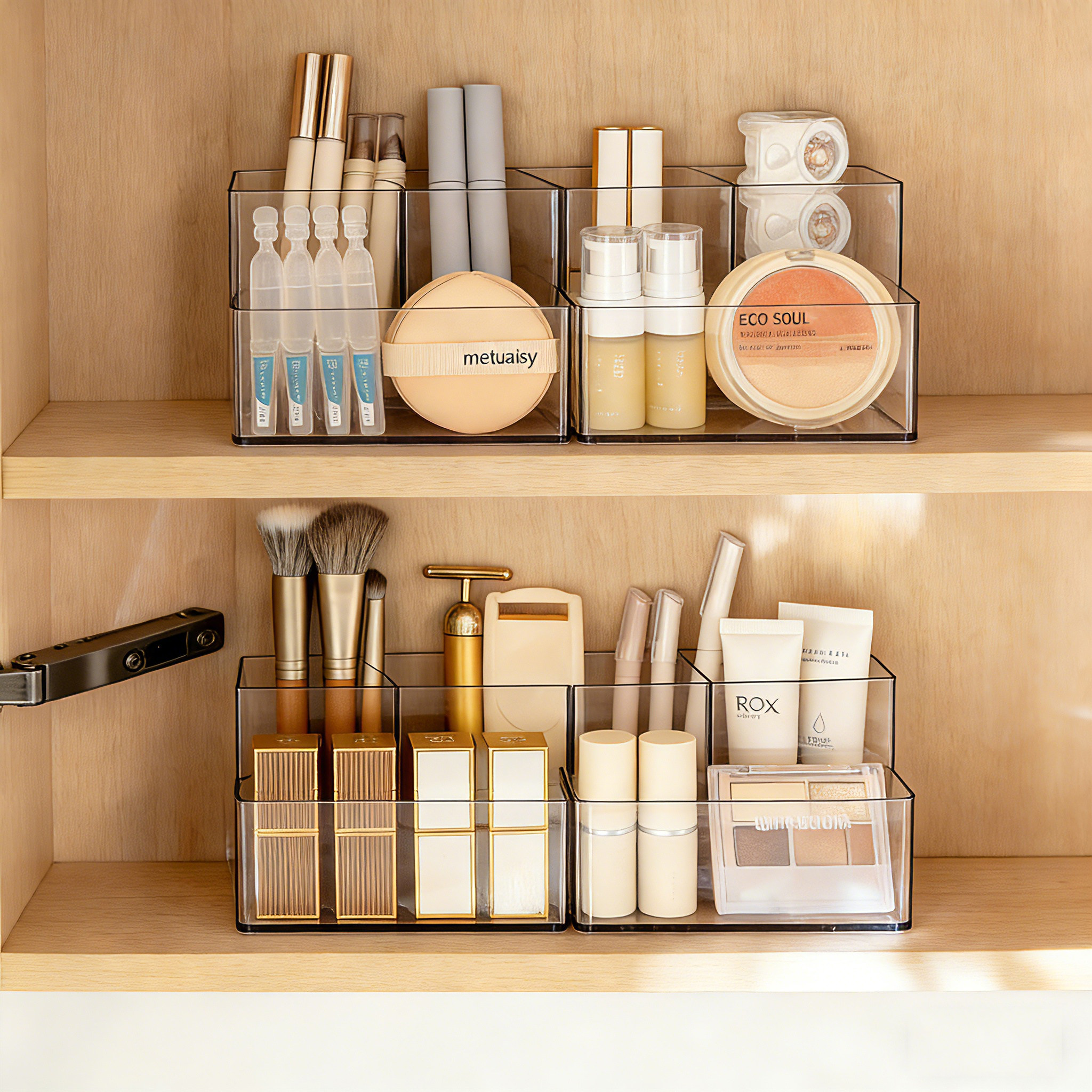 镜柜收纳盒粉扑口红梳妆台透明置物架化妆品桌面分格整理盒护肤品