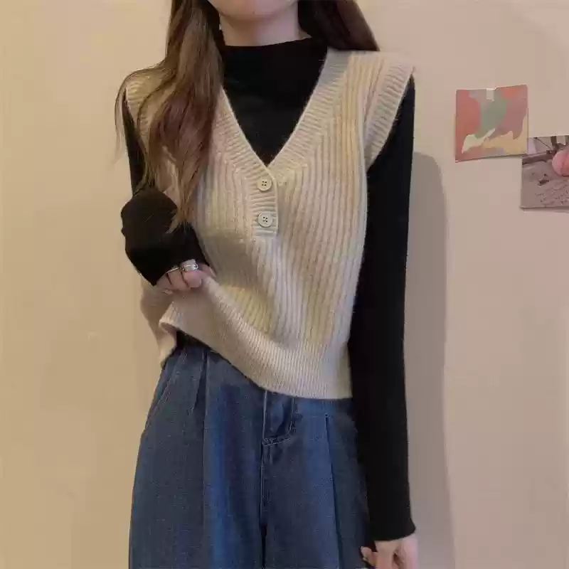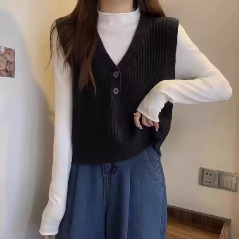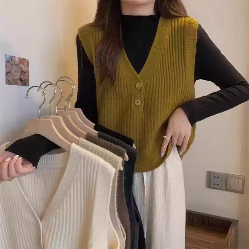 V领短款针织马甲背心女春秋冬配打底衫衬衫叠穿无袖毛衣坎肩马夹