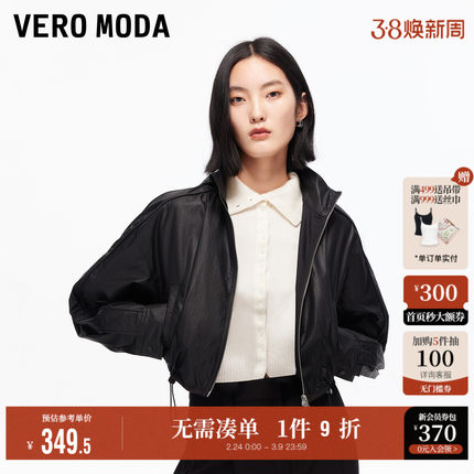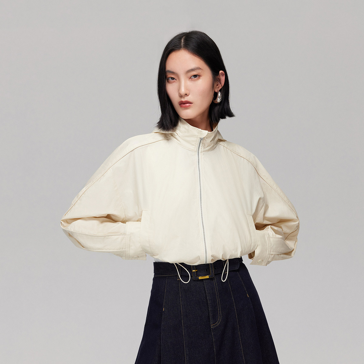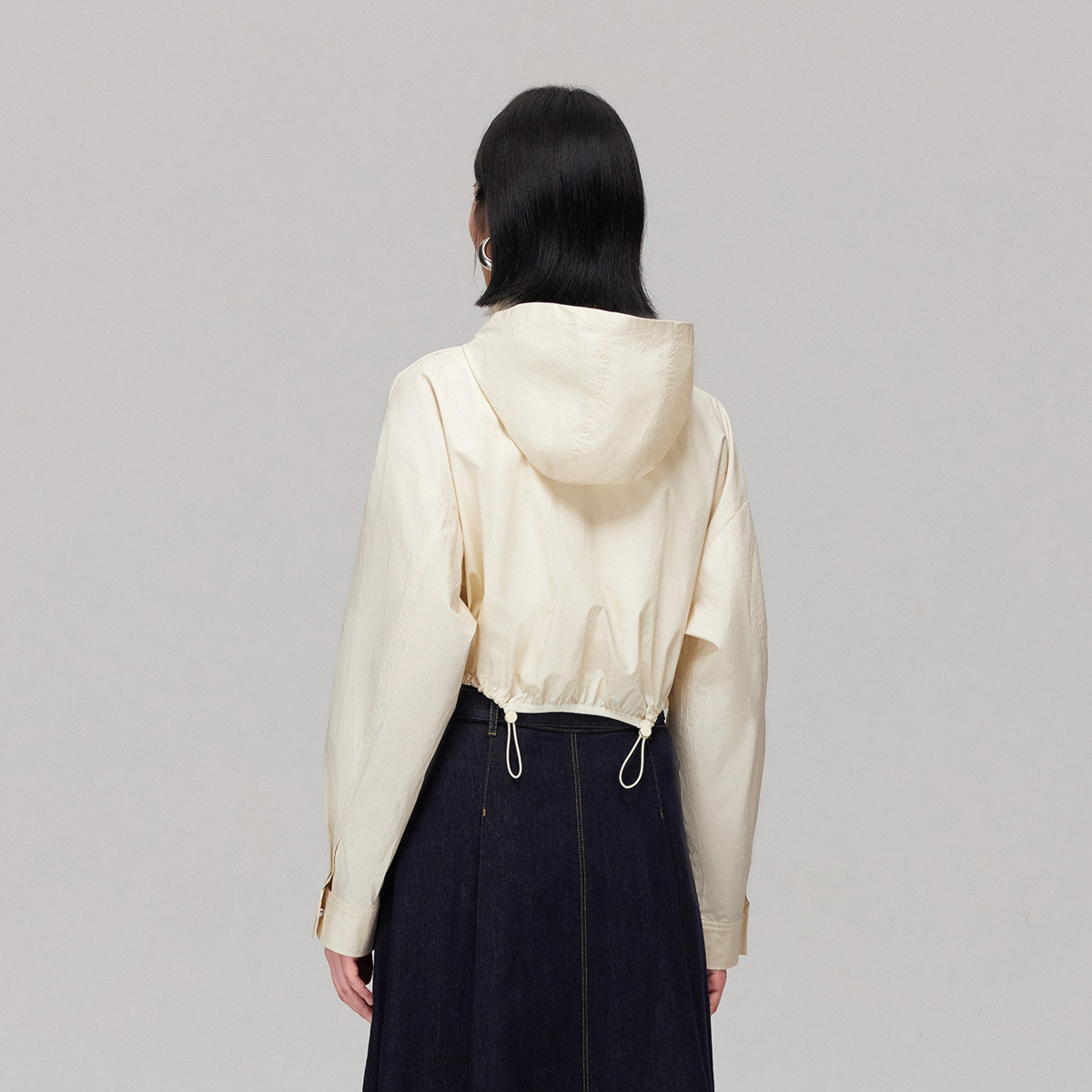 Vero Moda奥莱夹克女2025秋冬新款纯棉连肩袖抽绳连帽外套高级