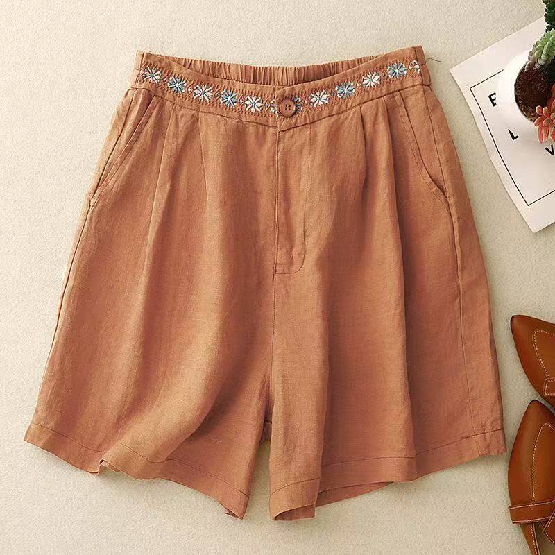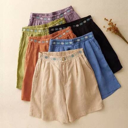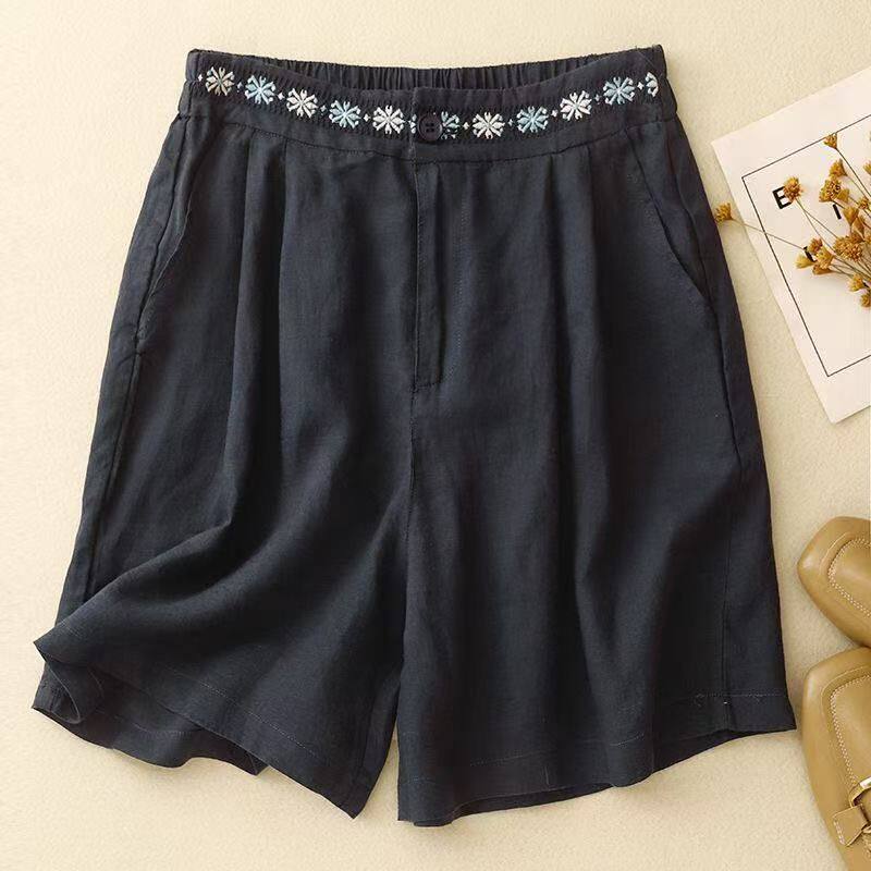 中国风高腰绣花短裤女2026夏季新款棉麻文艺宽松百搭透气五分裤
