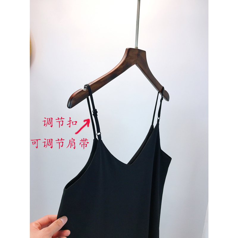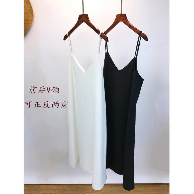 微透V领吊带裙防走光可单穿中长款细肩带A字宽松打底衬裙连衣裙女