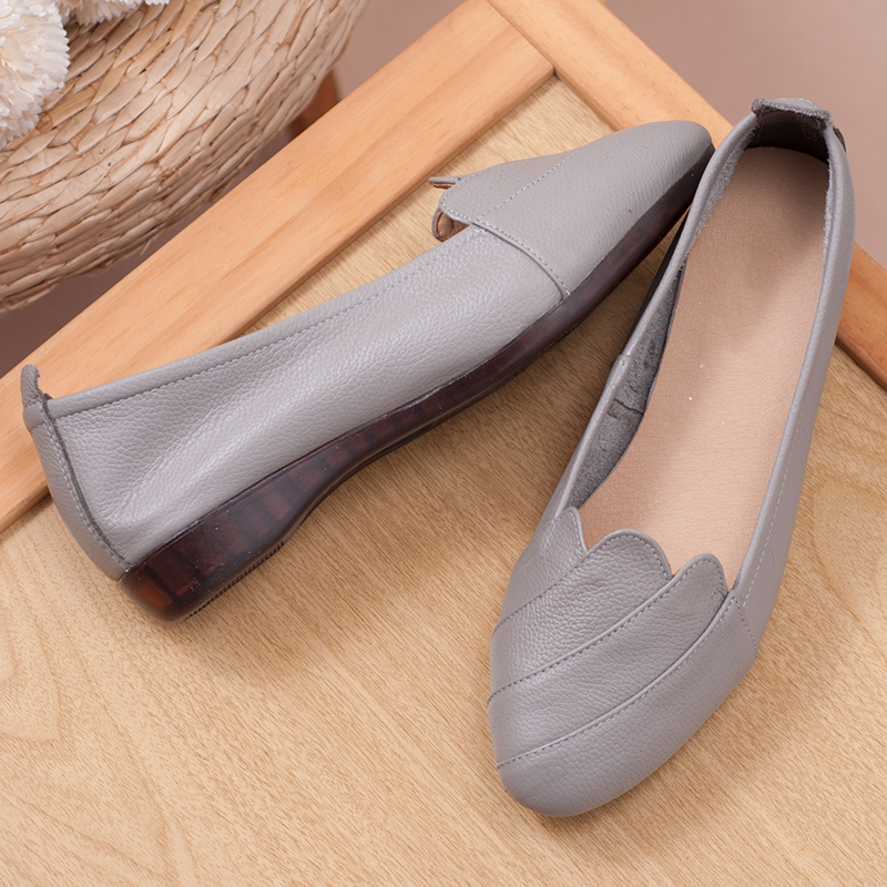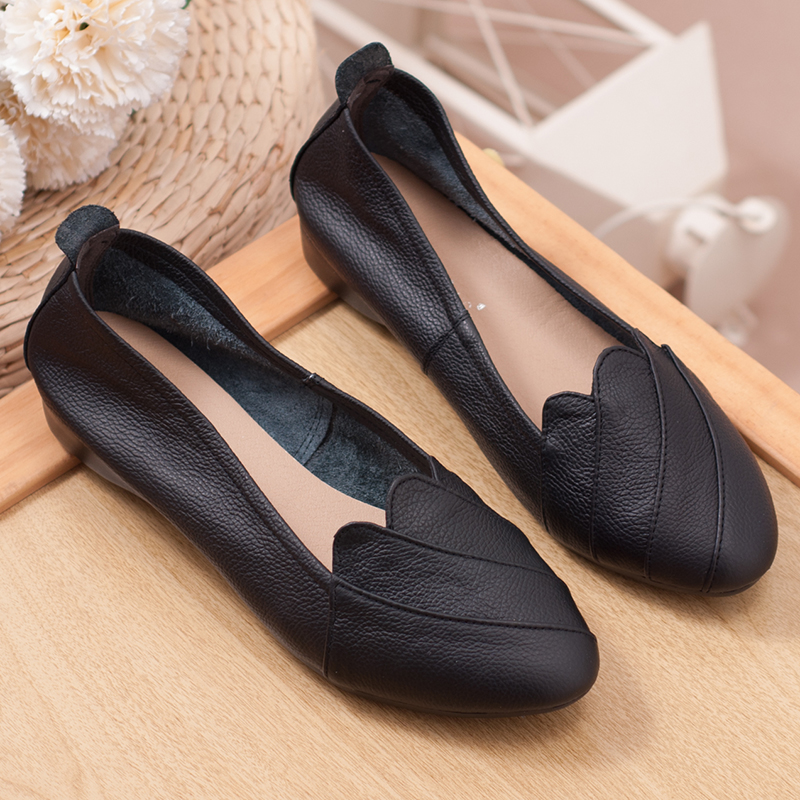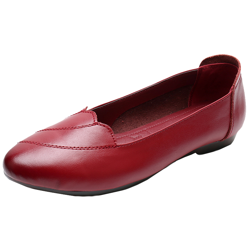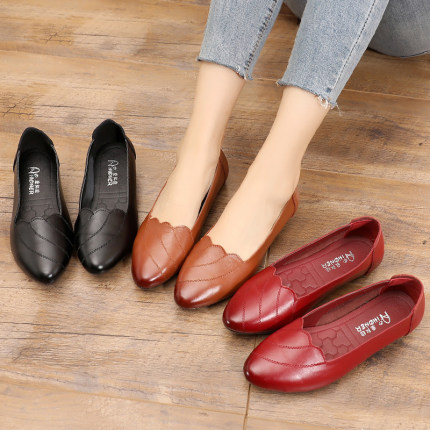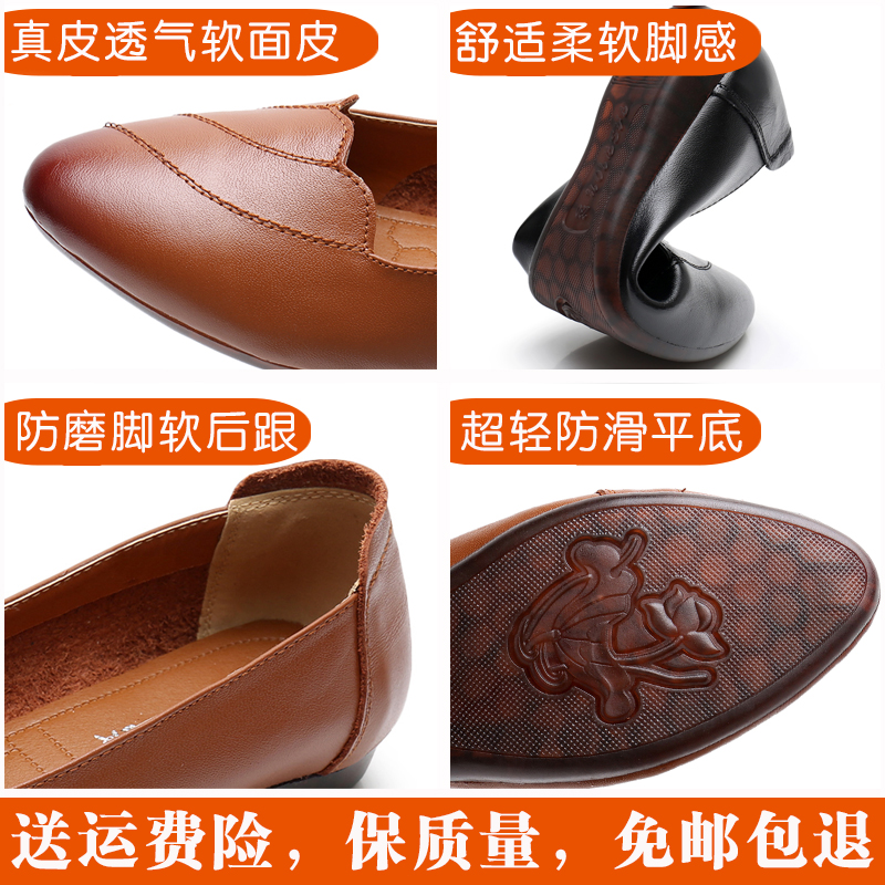 妈妈单鞋女平底平跟舒适真皮中年人休闲百搭防滑软底牛筋底软皮鞋