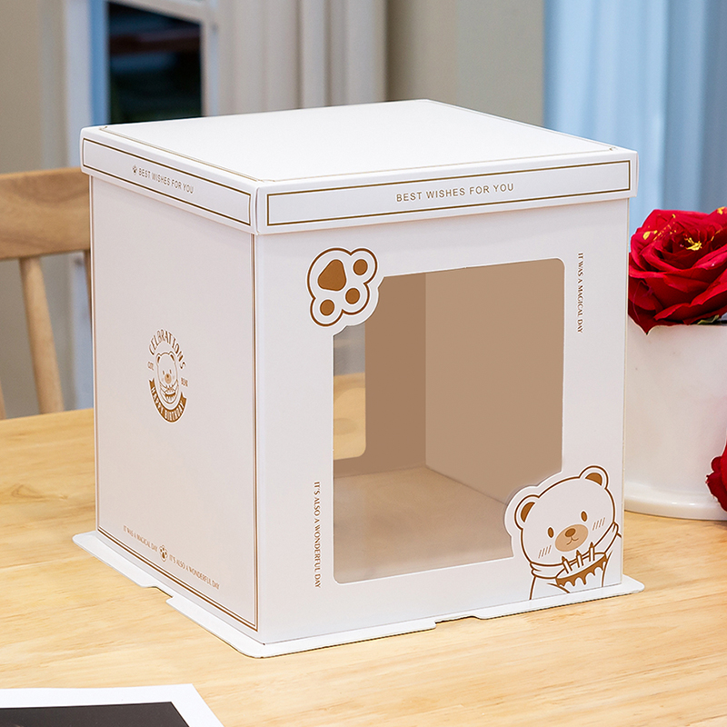 新款透明对开窗生日蛋糕盒子6/8/10/12寸单层双层加高烘焙包装盒