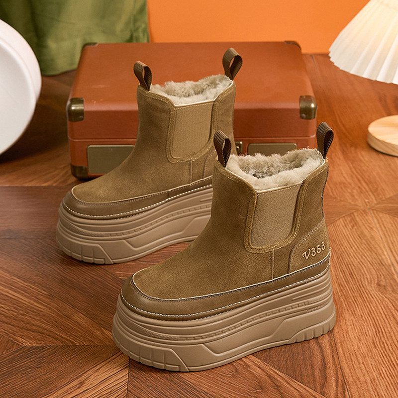 反绒真皮雪地靴厚底10cm内增高