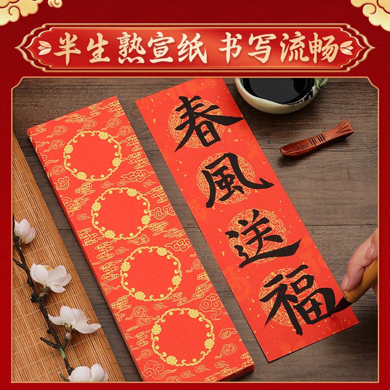 四言瓦当卡纸微喷加厚新年吉语书法空白宣纸作品纸毛笔字专用半生熟创作免装裱四字半熟对联春联万年红对联纸
