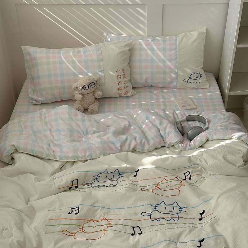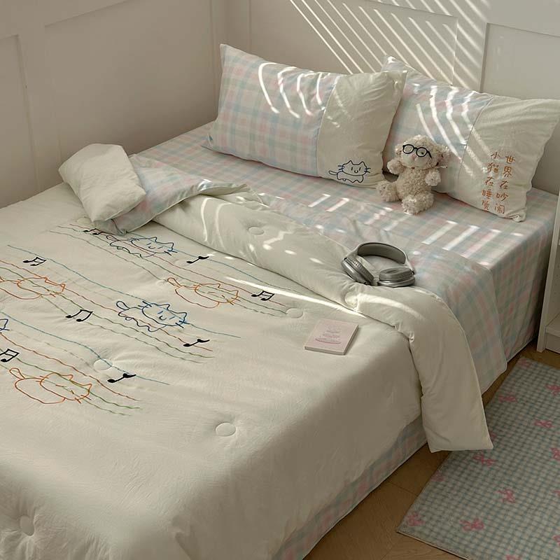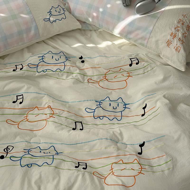 可爱刺绣夏凉被四件套2025新款夏季可机水洗空调被单双人小薄被子