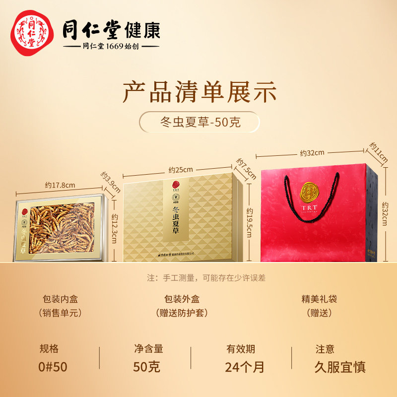 【正宗同仁堂品牌】北京同仁堂青源堂冬虫夏草虫草断草50克送人参