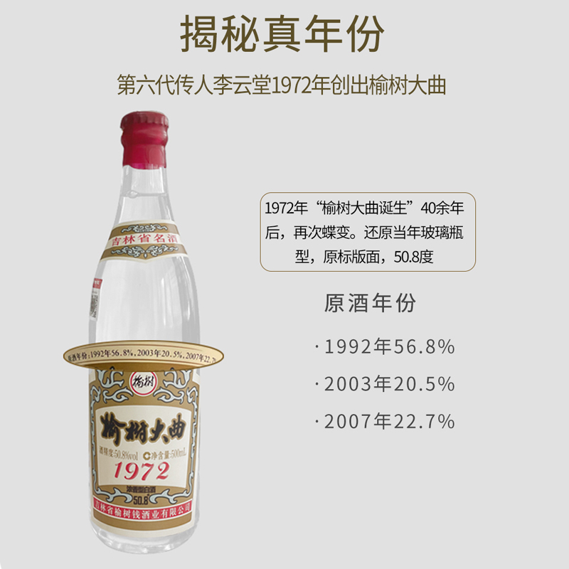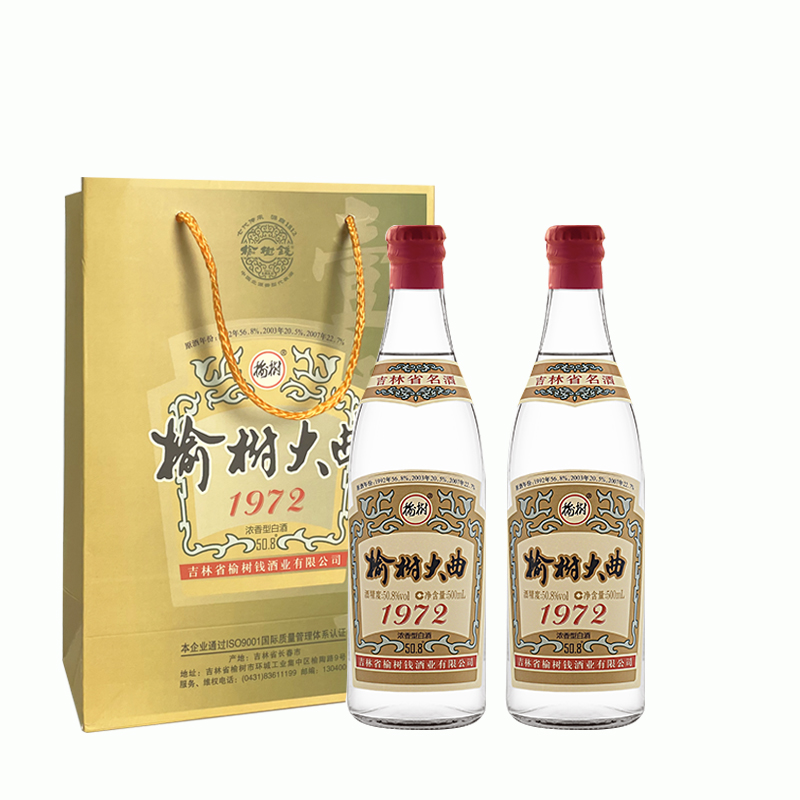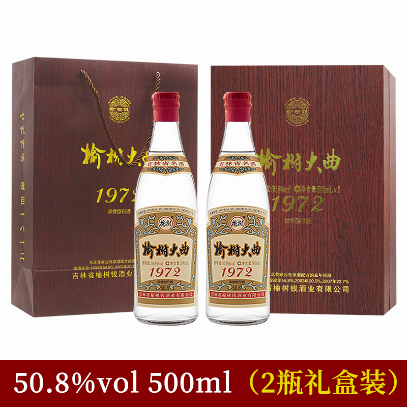 榆树钱旗舰店大曲1972纯粮酒高粱小麦国产白酒老酒礼袋500ml送礼