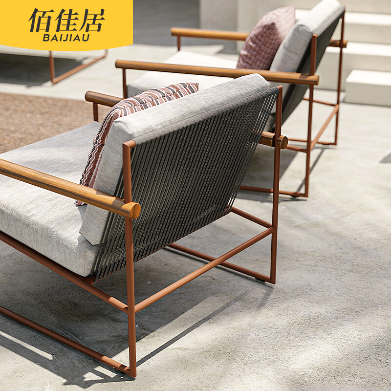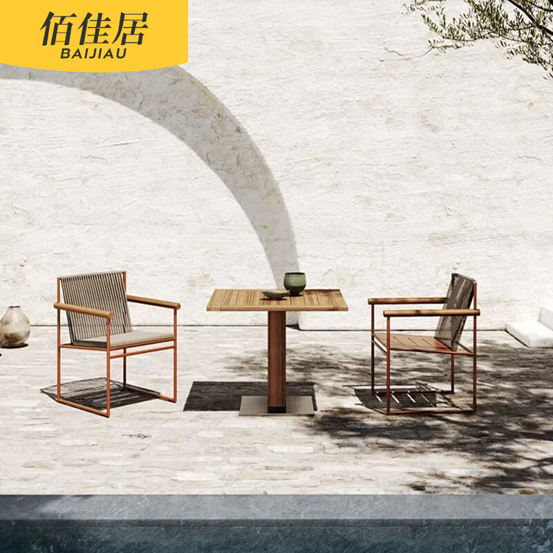北欧户外休闲沙发露台设计师阳台桌椅组合不锈钢柚木酒店高端家具