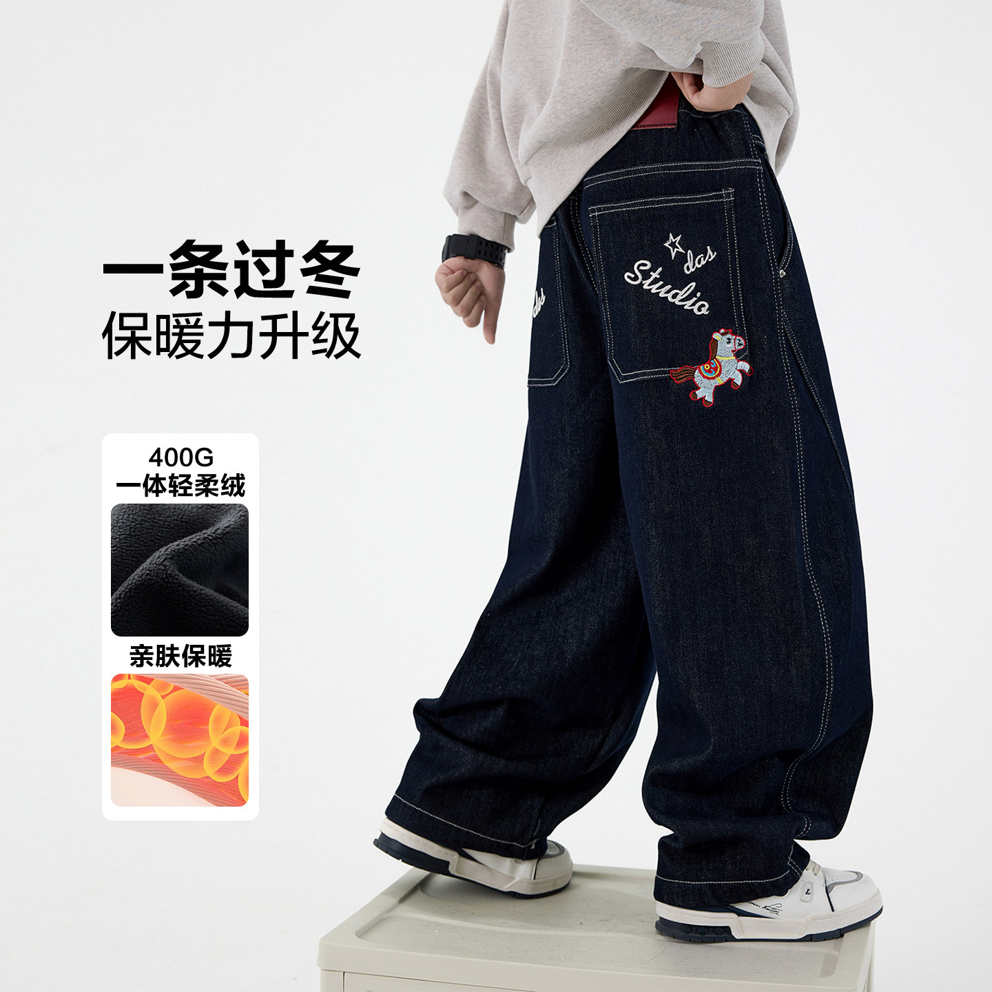 男童冬季加绒加厚阔腿牛仔裤